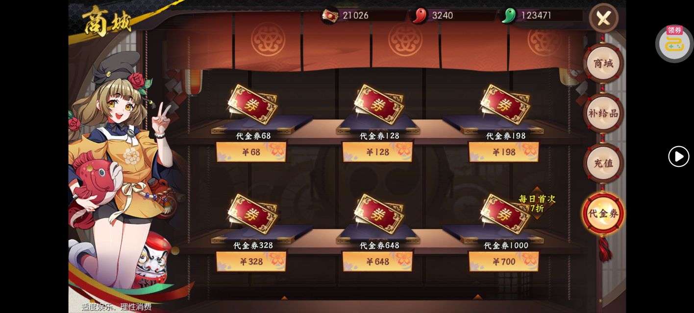 夺宝券*1、比武令*1、5星随机将魂*10(每个账号限领一次)