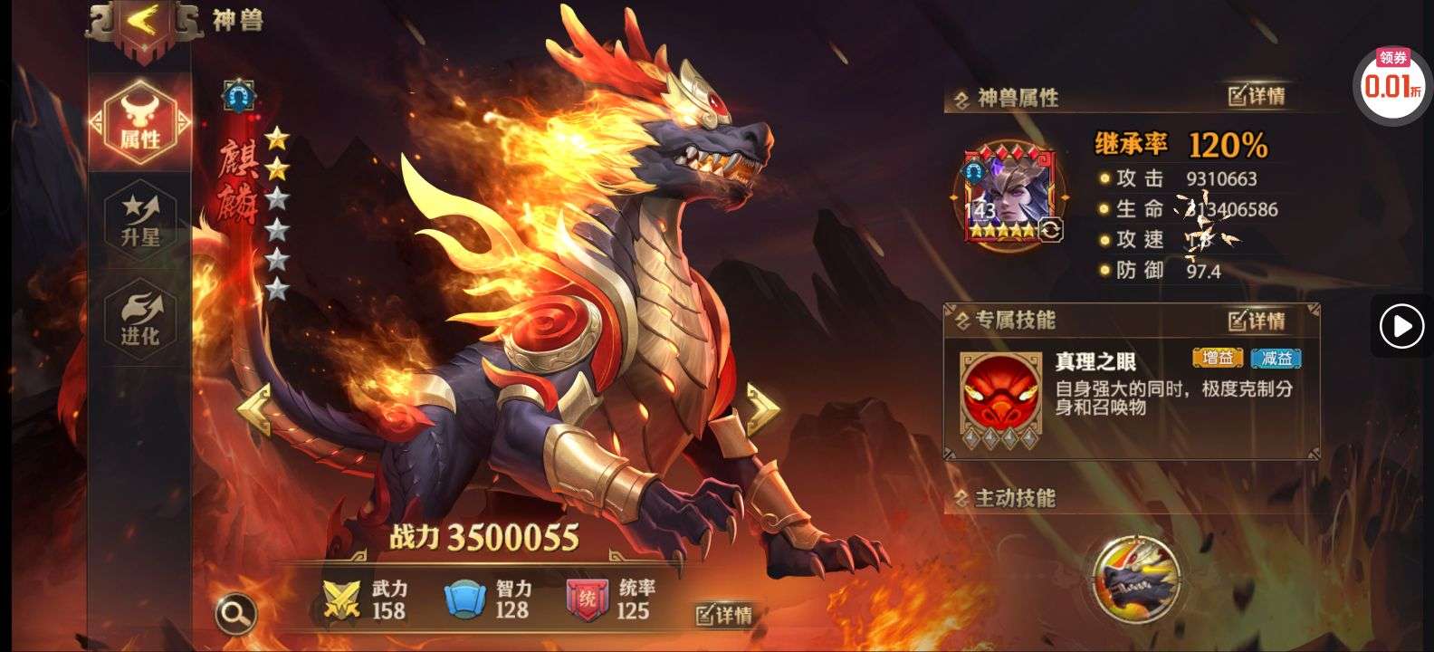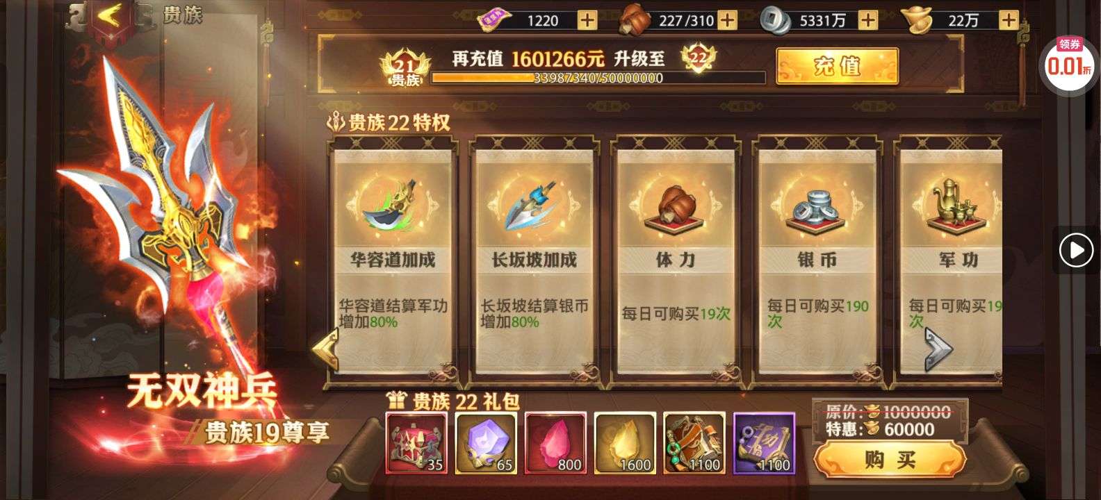 夺宝券*1、比武令*1、5星随机将魂*10(每个账号限领一次)
