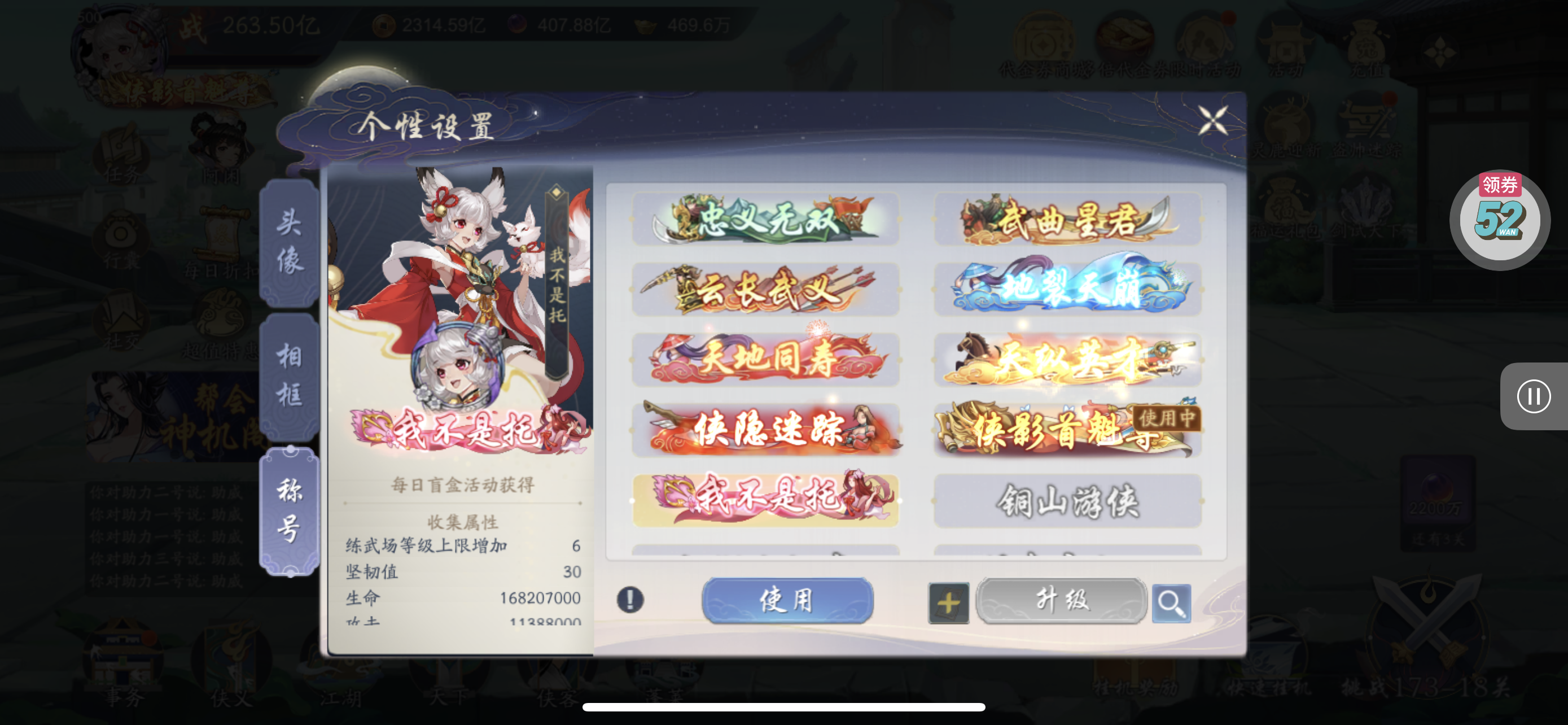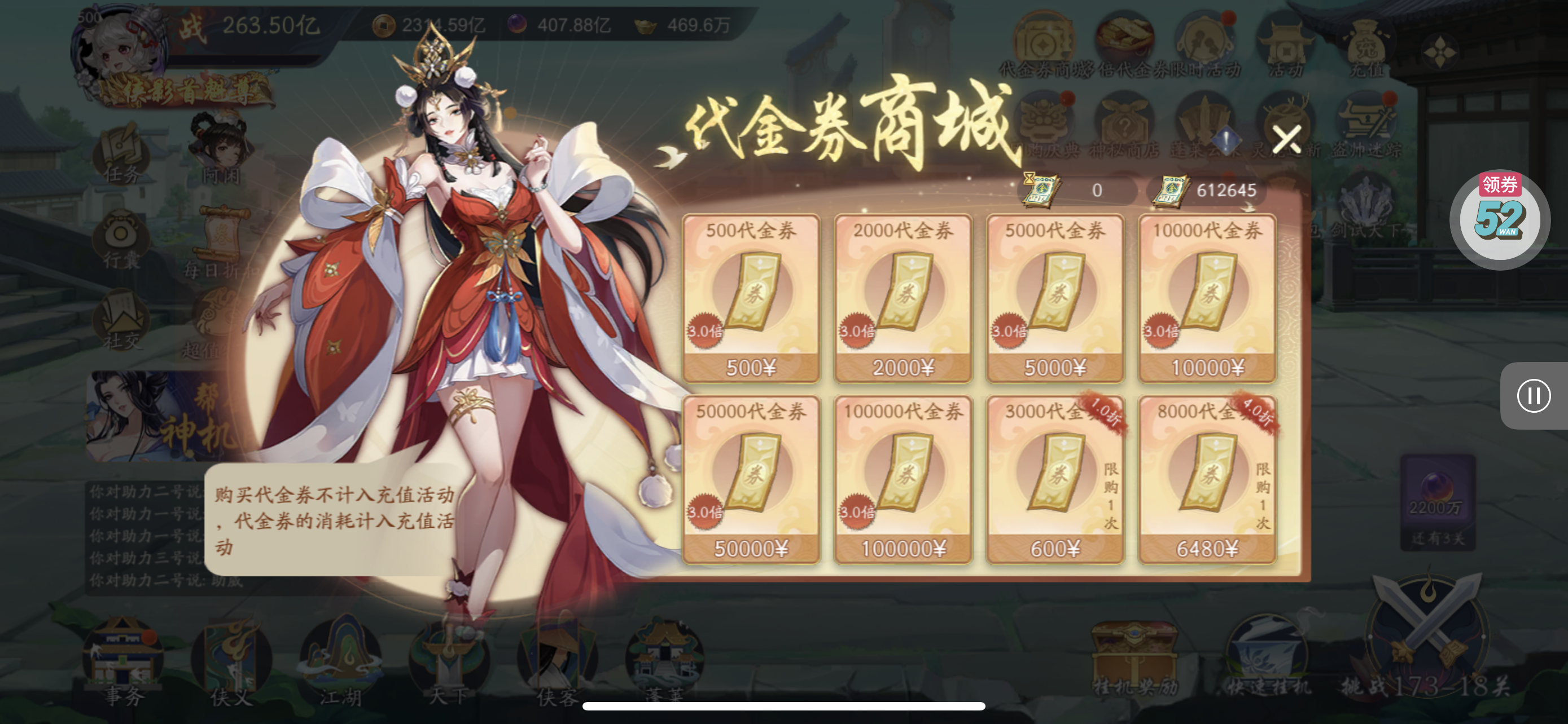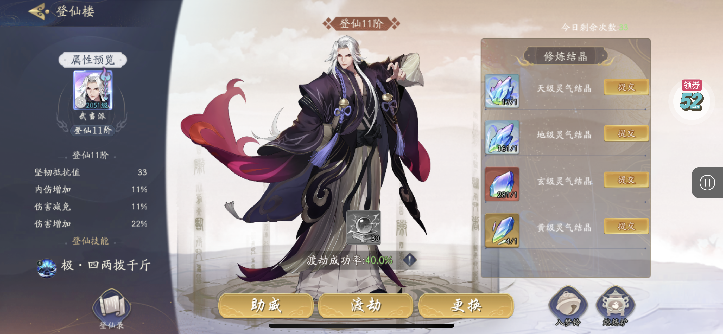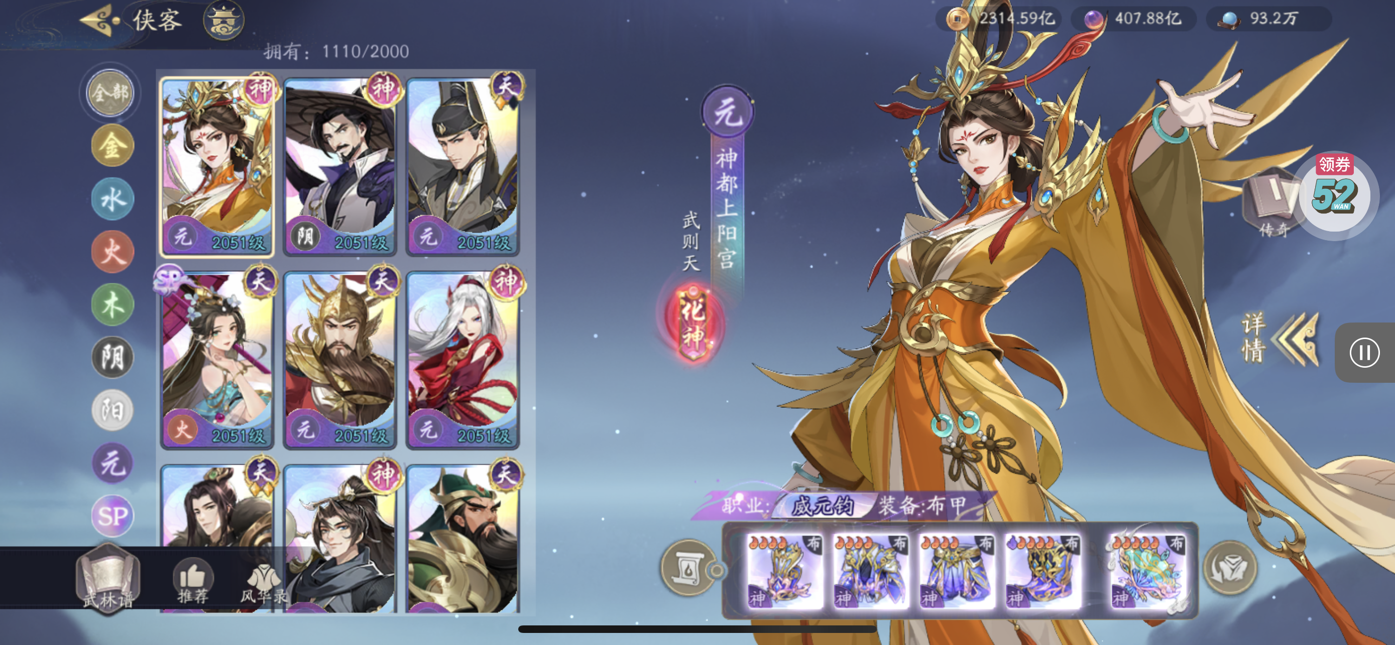 周瑜小乔等丹化神;登仙就差武当没满,五级侠隐一级托,代金劵还有60w多点,号已成型资源多,善待!