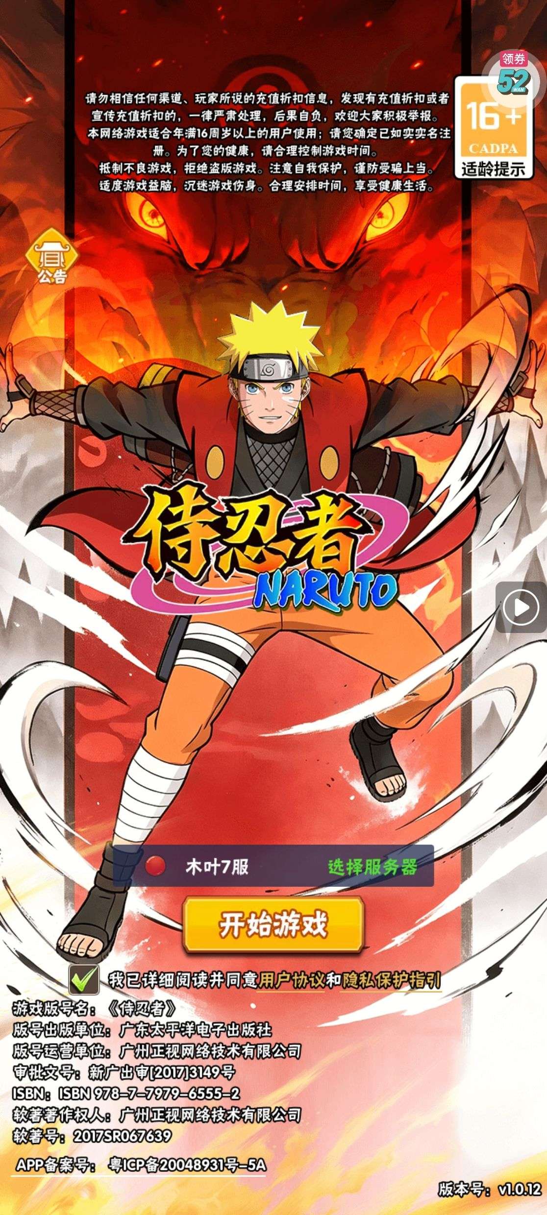 夺宝券*1、比武令*1、5星随机将魂*10(每个账号限领一次)