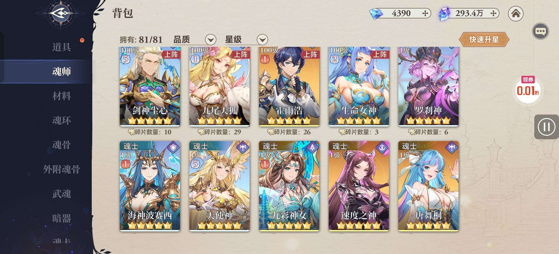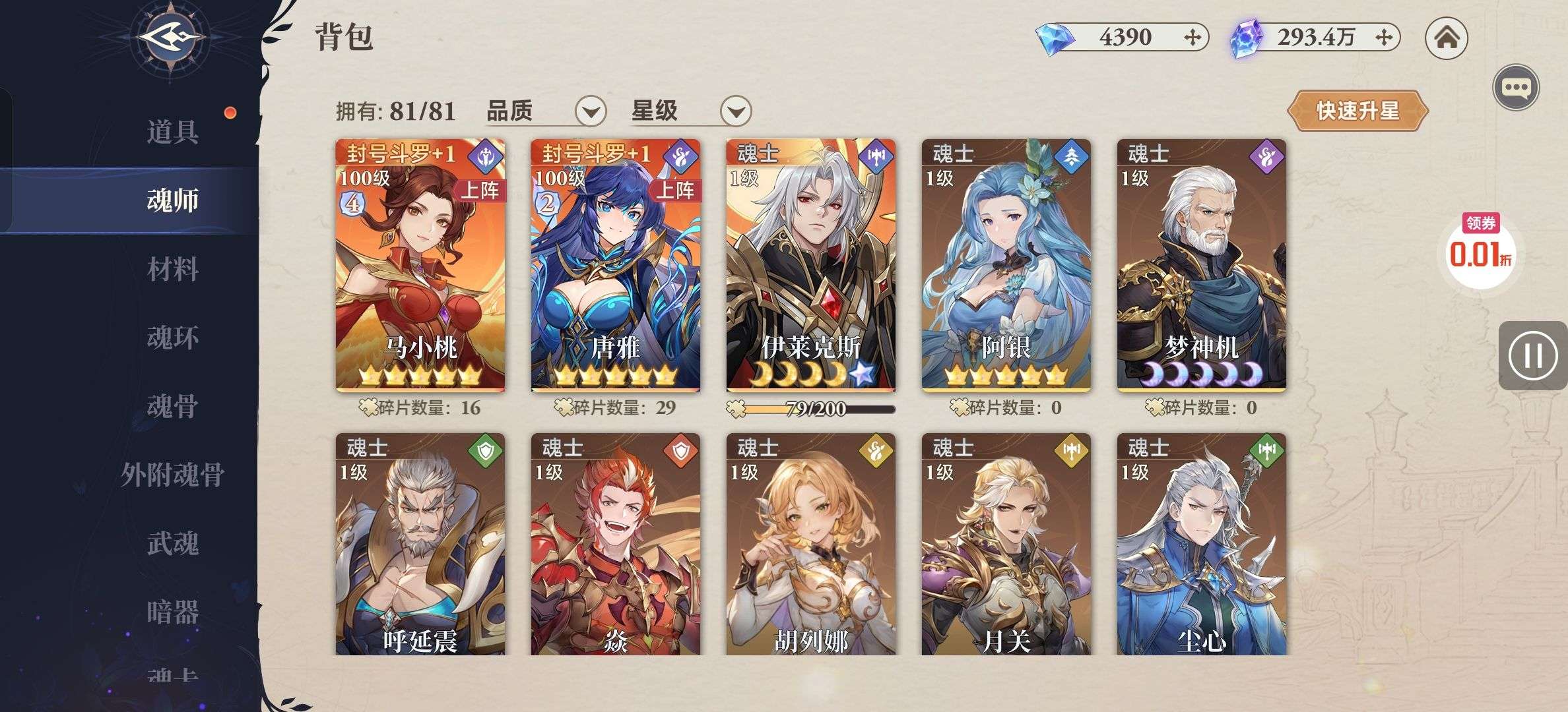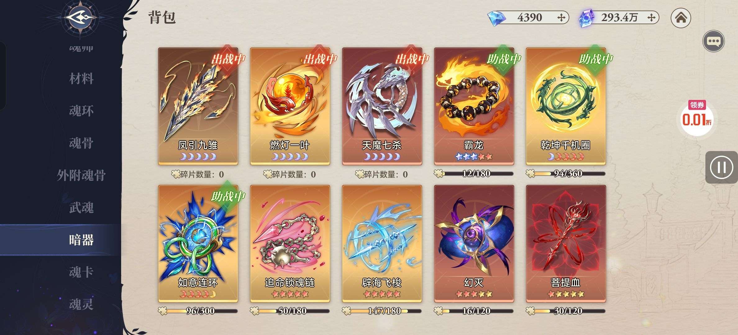 夺宝券*1、比武令*1、5星随机将魂*10(每个账号限领一次)