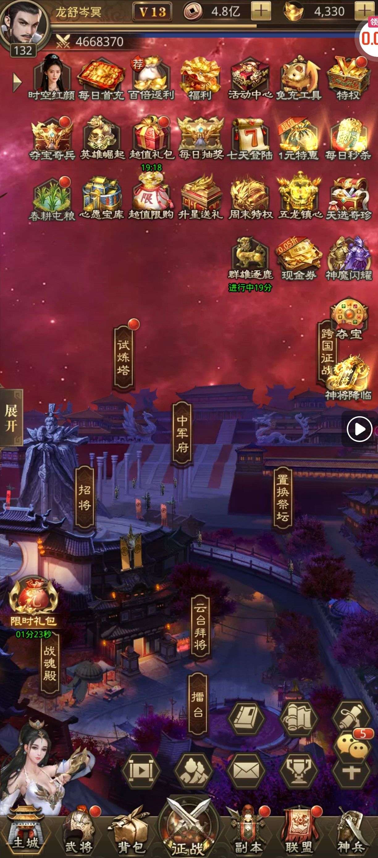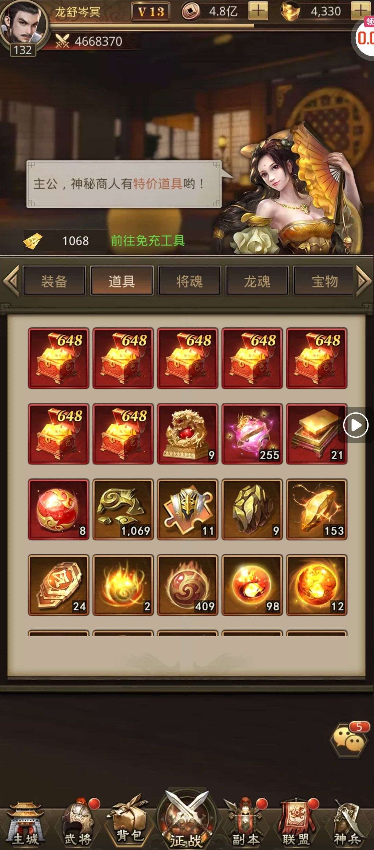 夺宝券*1、比武令*1、5星随机将魂*10(每个账号限领一次)