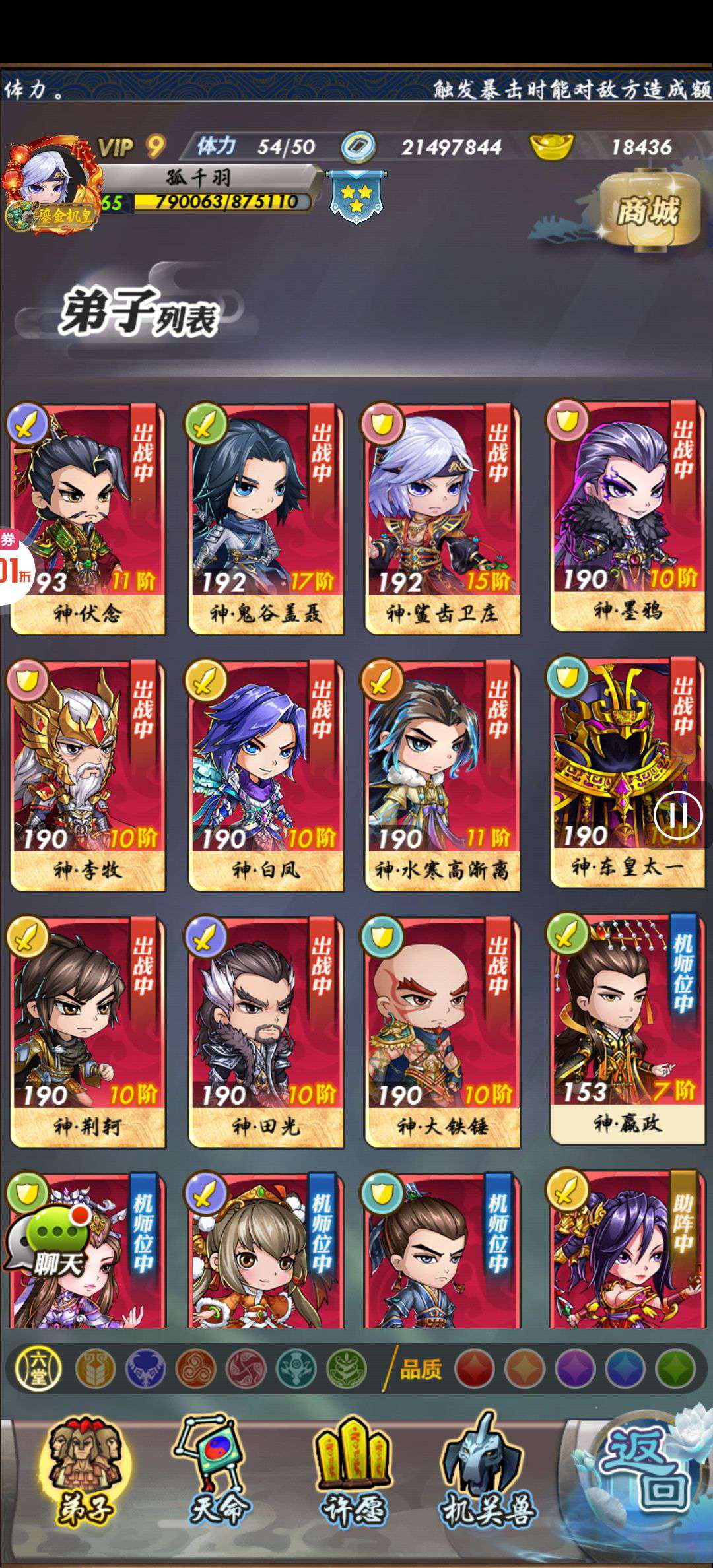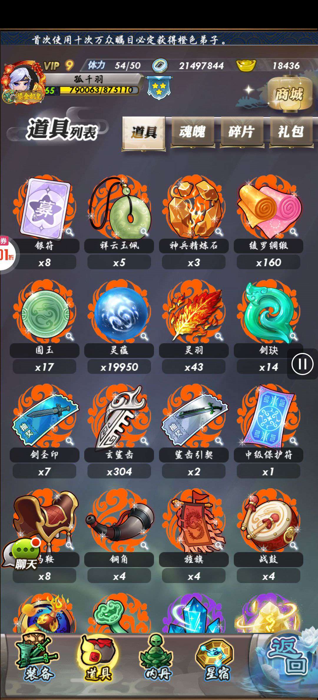 巅峰强势角色收集 还有两万多元宝可用 200多天月卡 材料还有很多 有两个橙色装备自选没开 v9等级 随便接受
