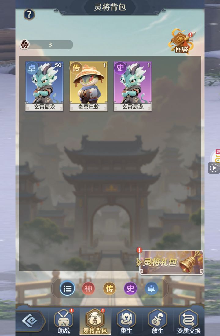 夺宝券*1、比武令*1、5星随机将魂*10(每个账号限领一次)