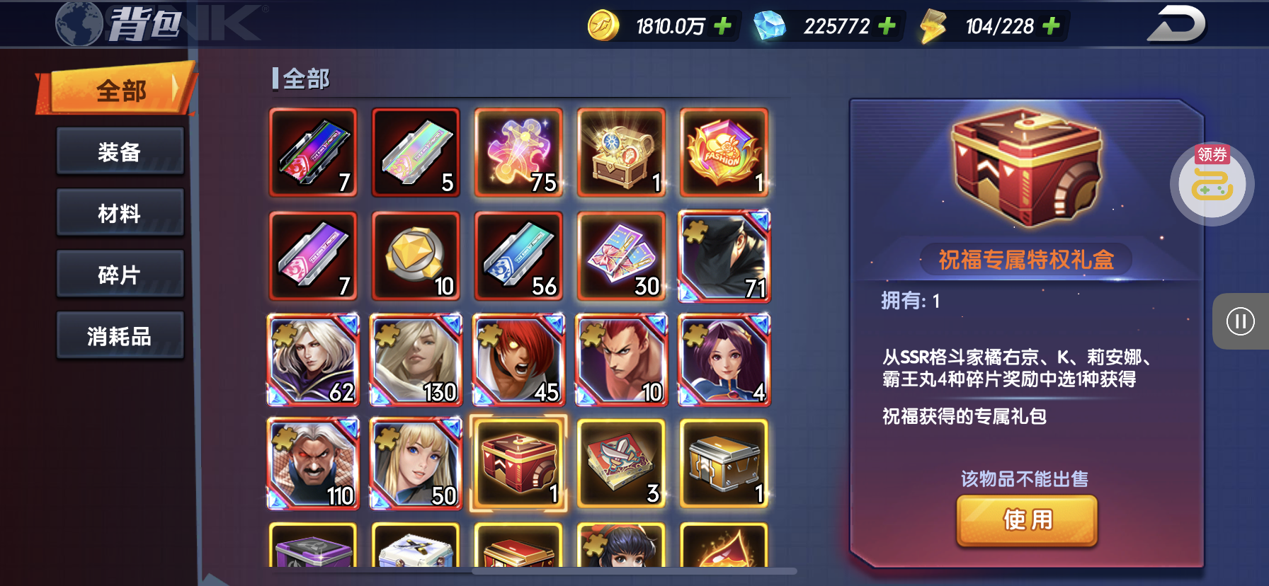 芯片熔炼石*1、离子探针*50、净化金属*50(每个账号限领一次)