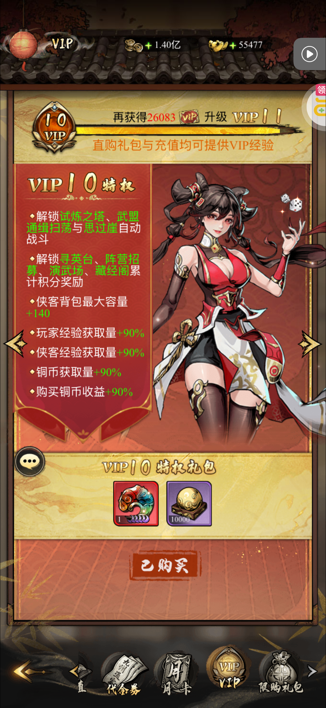 30张648真充卡豪礼、侠客灵丹*10、侠客神丹*10、侠客金丹*1、专属挑战令*1(每个账号限领一次)