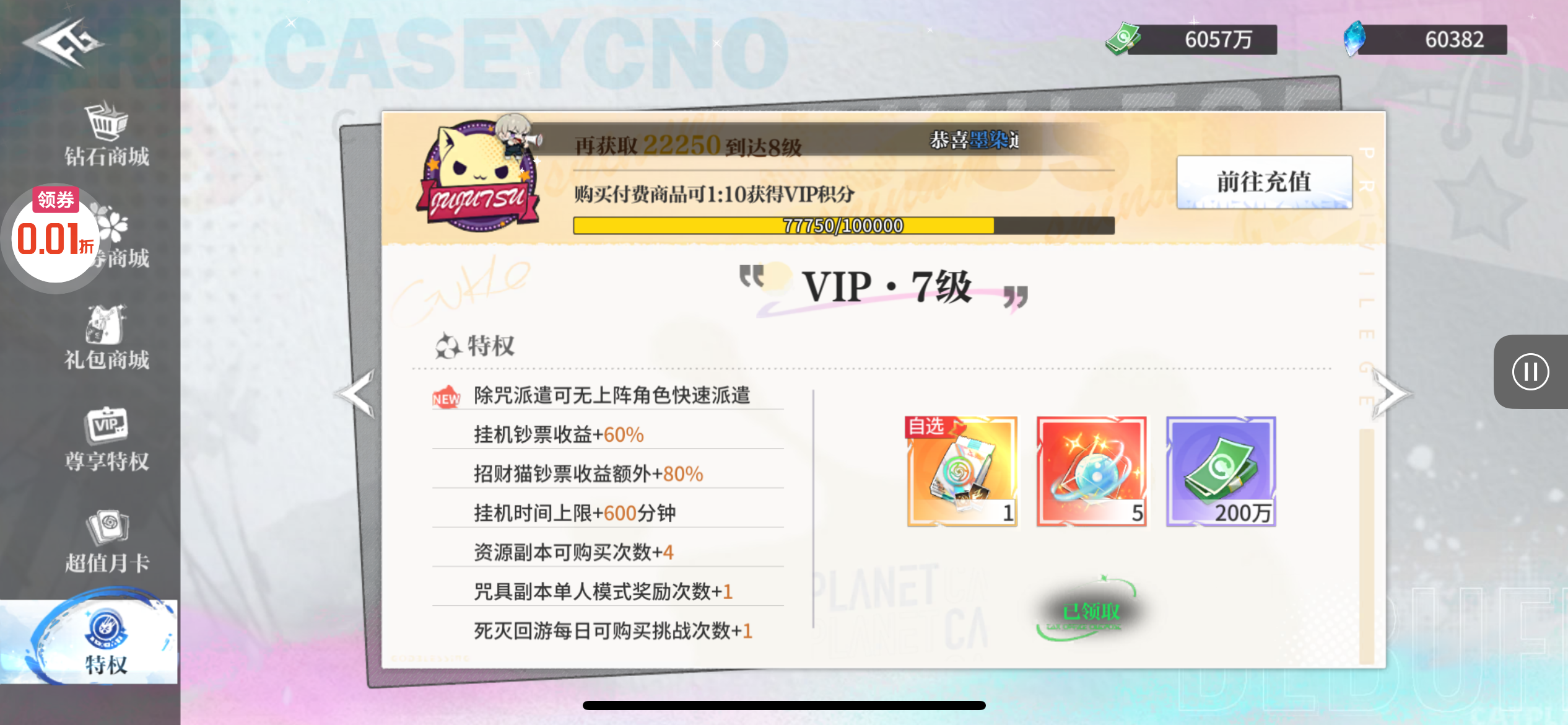 强化药剂*200、钻石招募币*20、金币*50W(每个账号限领一次)