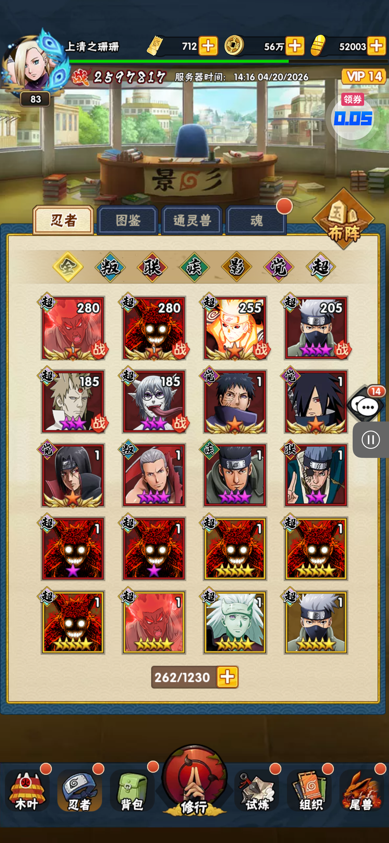 78 万战力,背包各种超忍
