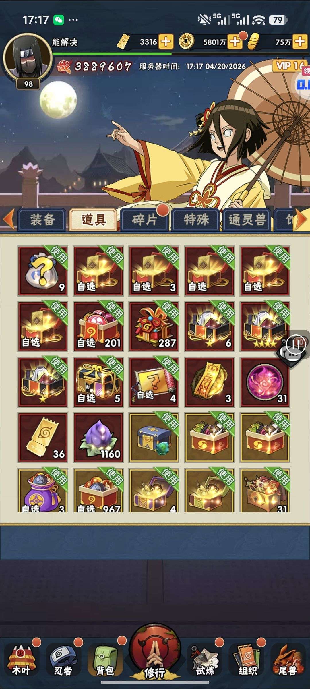 78 万战力,背包各种超忍