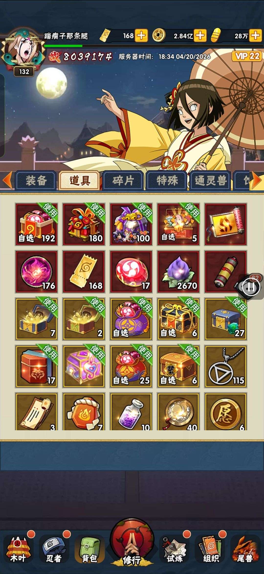 78 万战力,背包各种超忍