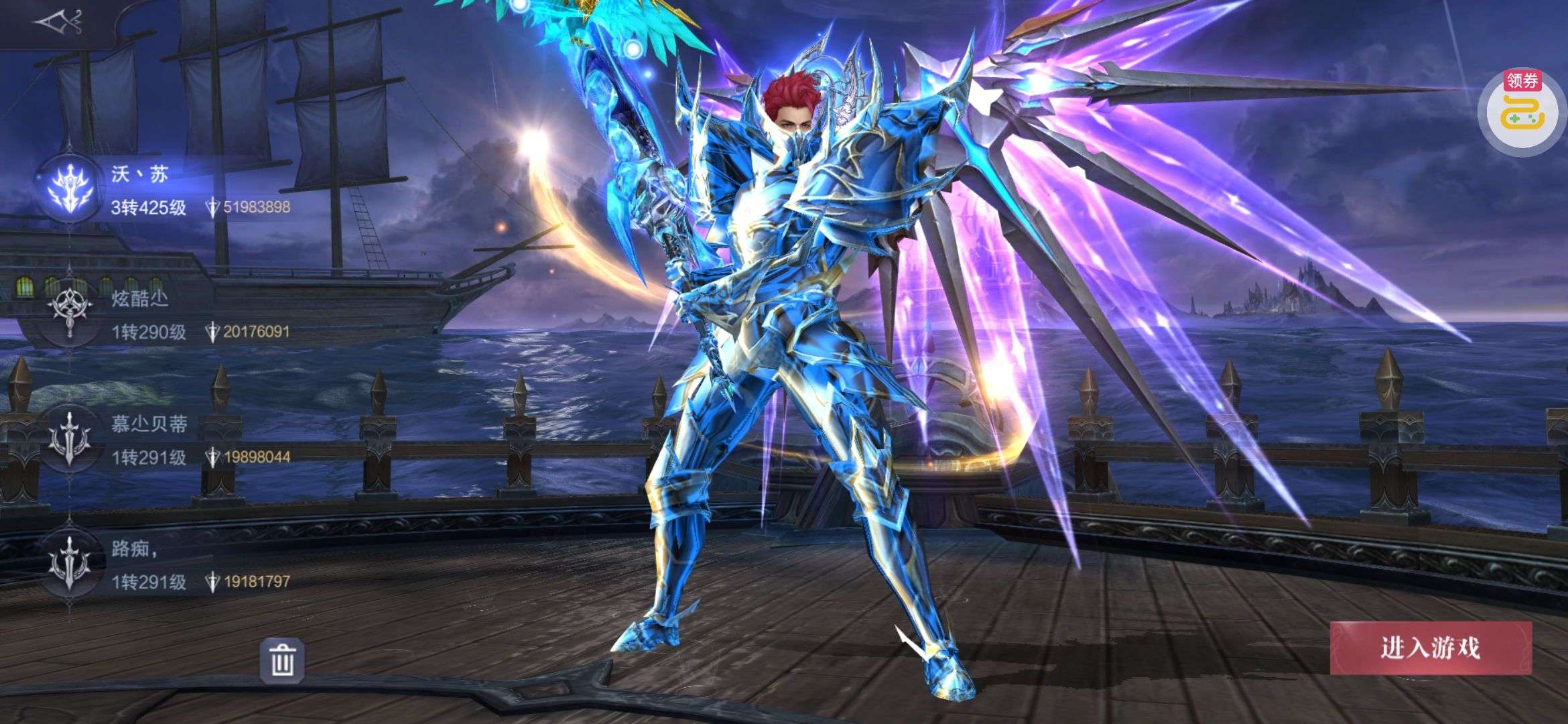 夺宝券*1、比武令*1、5星随机将魂*10(每个账号限领一次)