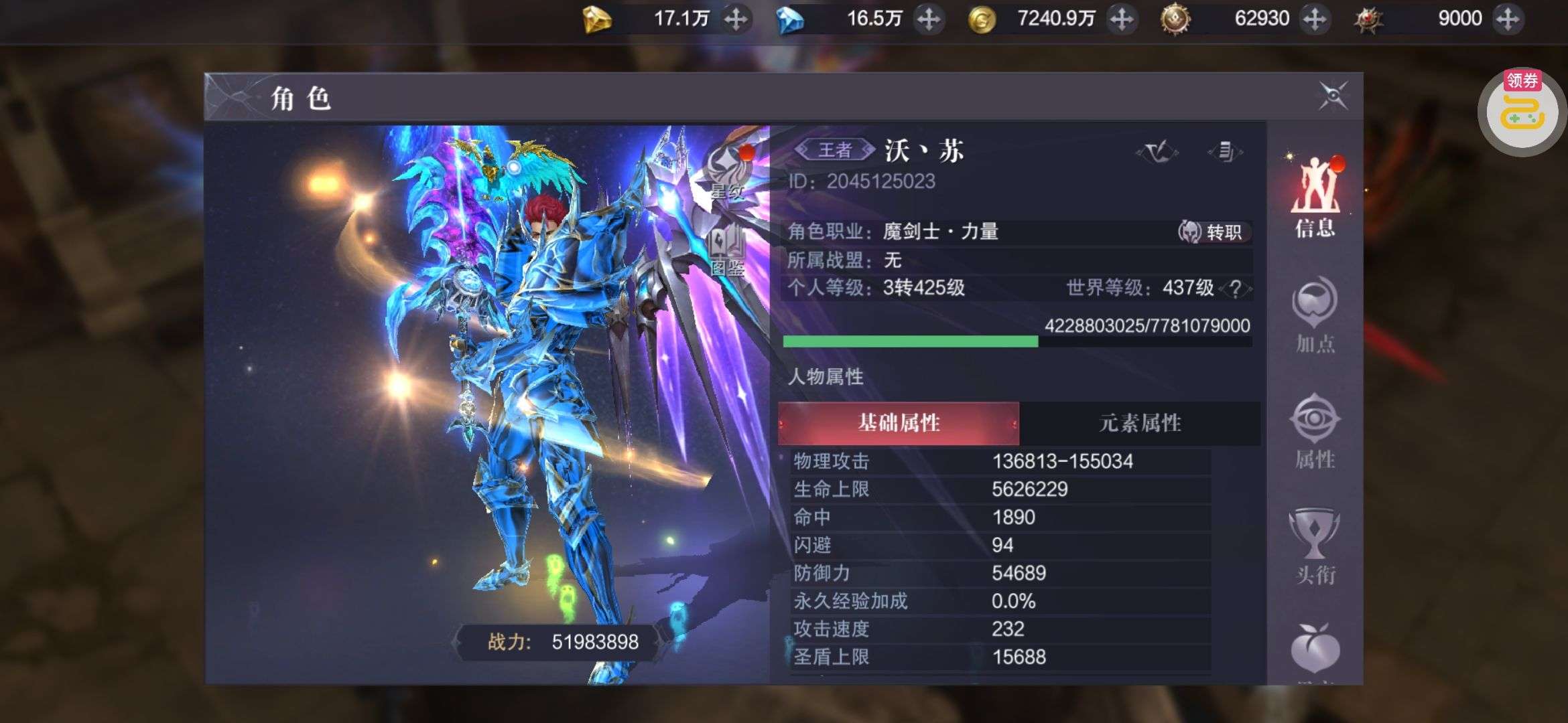 该角色累计充值4989.03元。 购买须知: 1.购买后支持回收或再次出售,不支持转区。 2.回收金额仅计算该小号购买后的充值金额,不计算购买前原有充值金额。 3.再次出售需等待购买72小时后,累充显示该小号总充值金额。