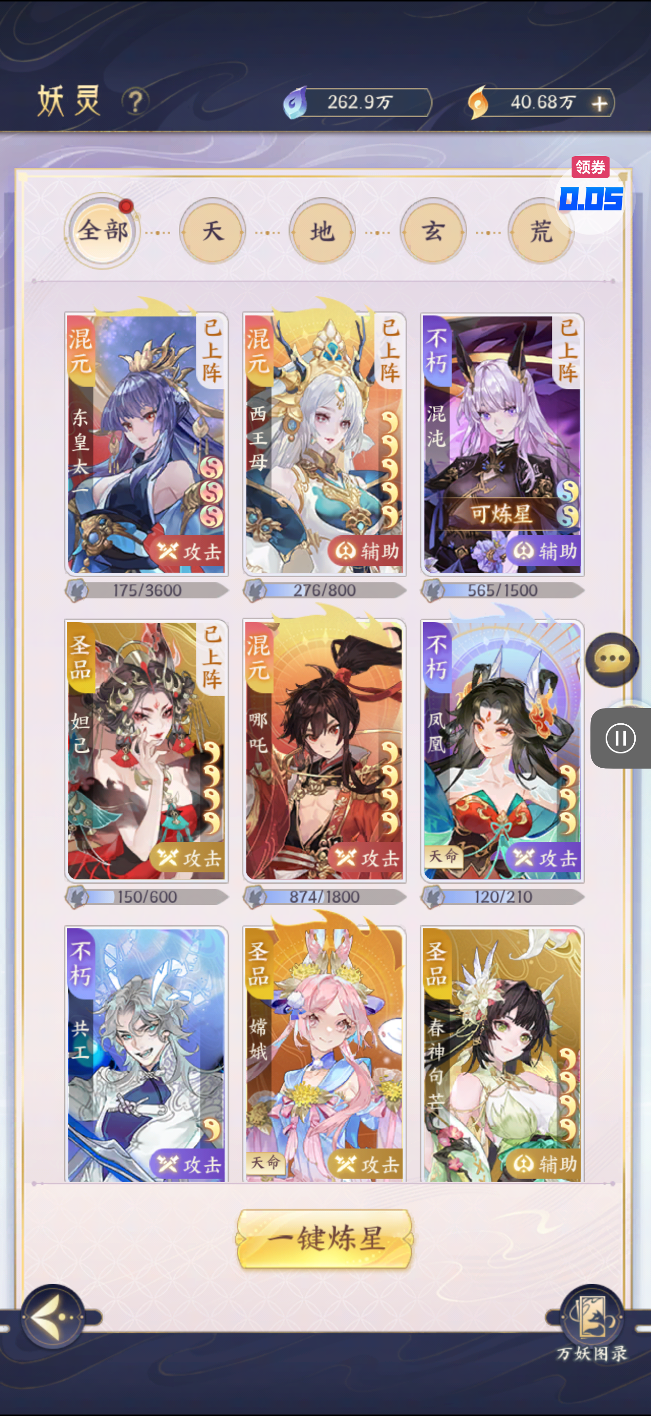 满星混沌,七星杨戬,6星女娲,5星凤凰
