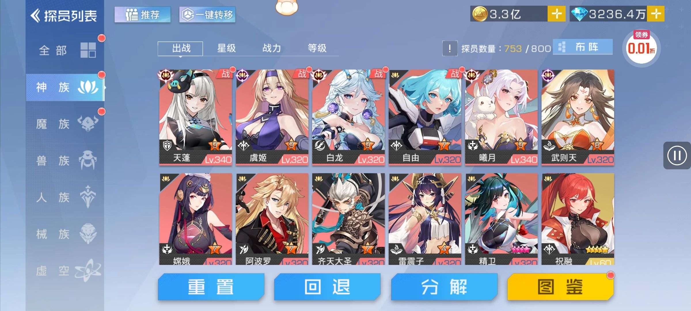 战力大区靠前,底子不错,该有的氪探都有,资源也足够用,女娲下周能到18星。