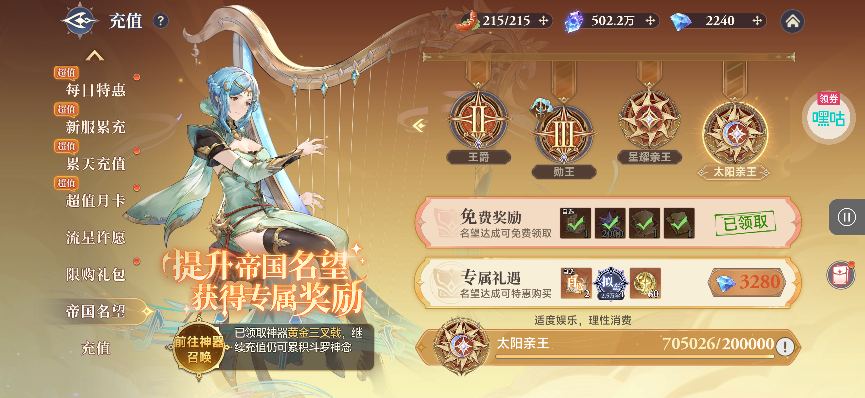 夺宝券*1、比武令*1、5星随机将魂*10(每个账号限领一次)