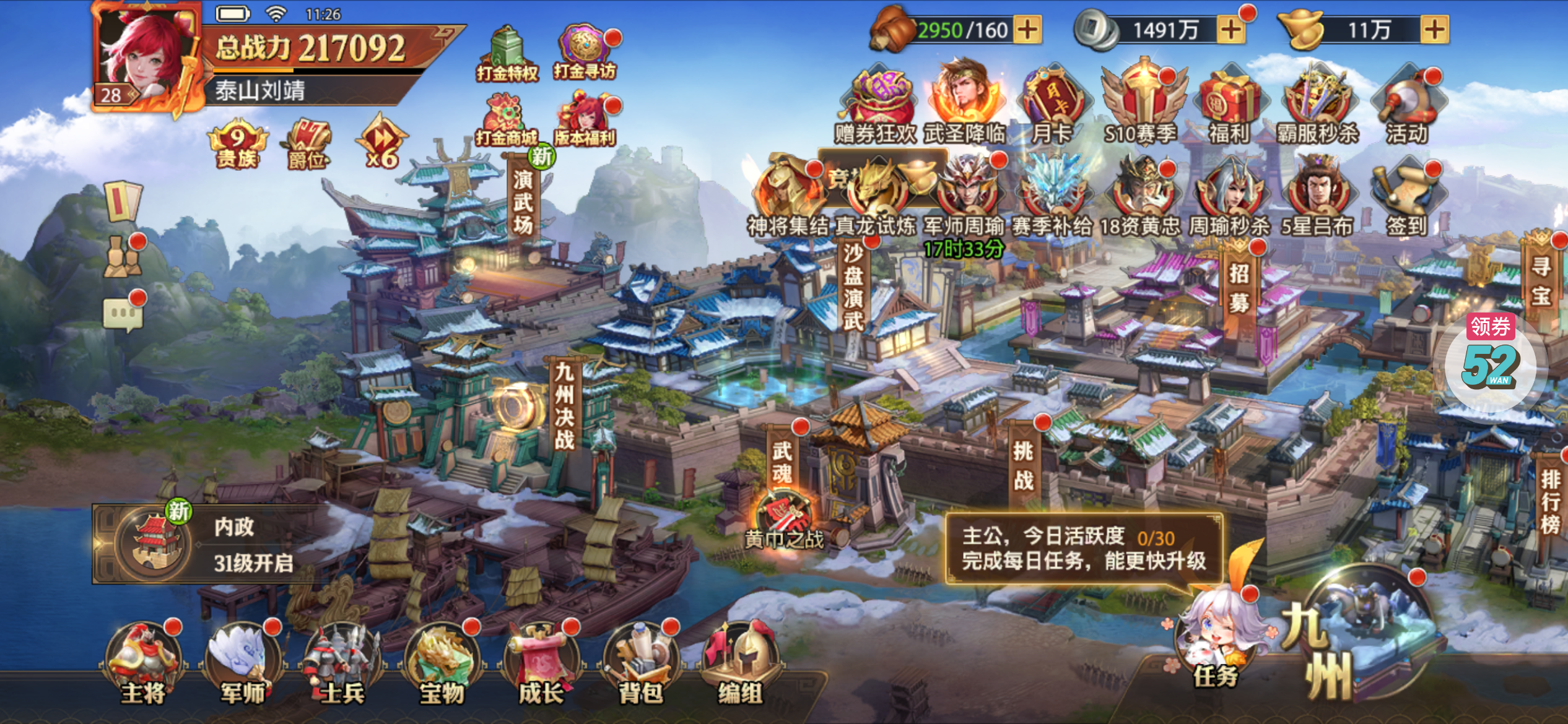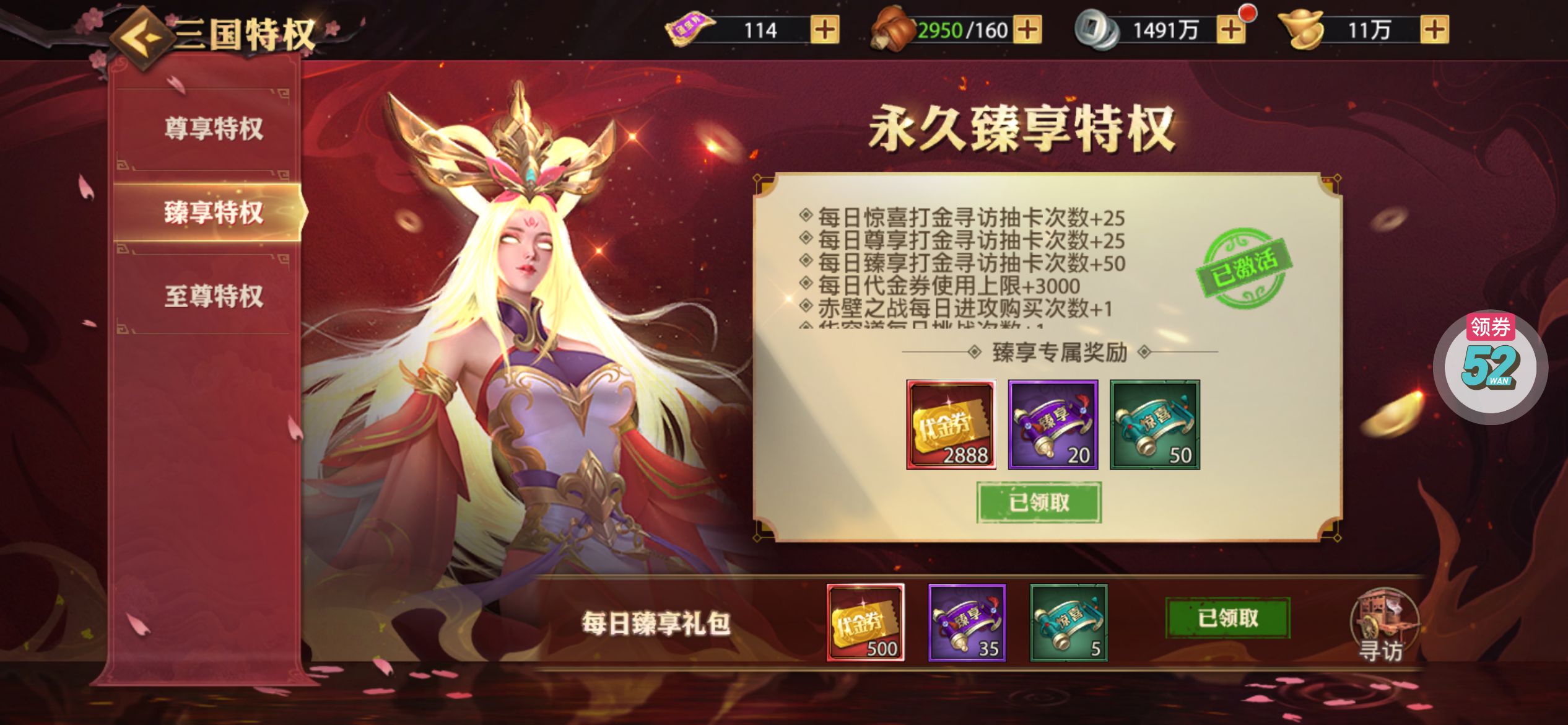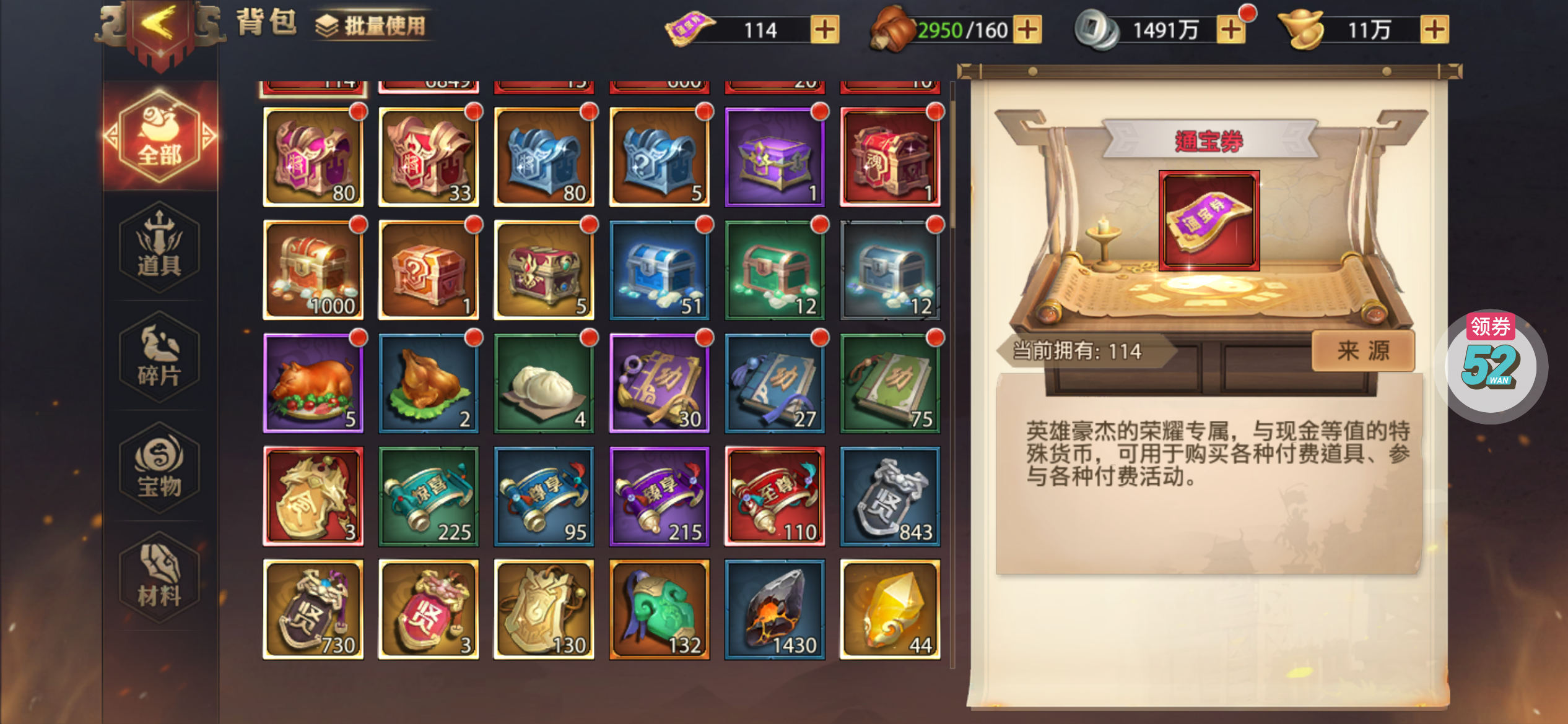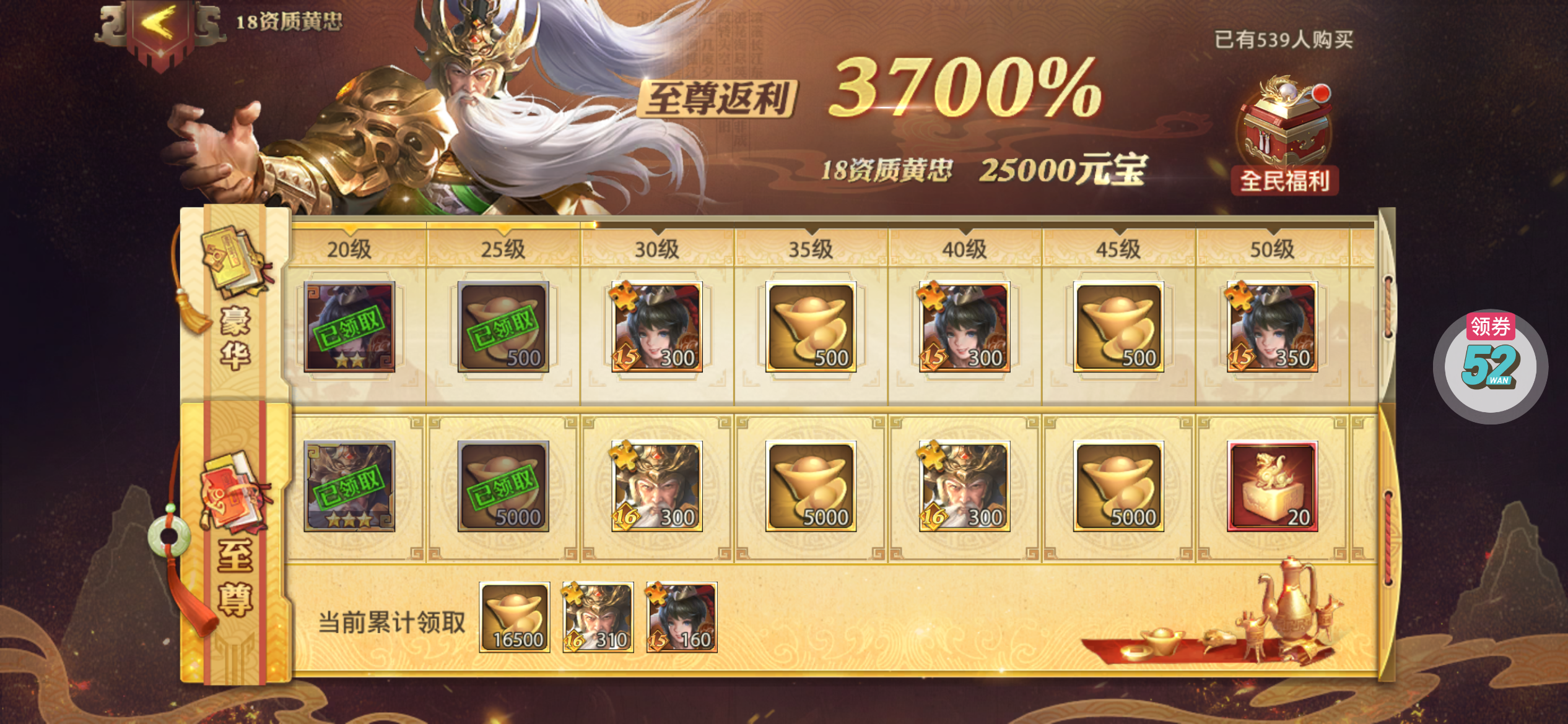 夺宝券*1、比武令*1、5星随机将魂*10(每个账号限领一次)
