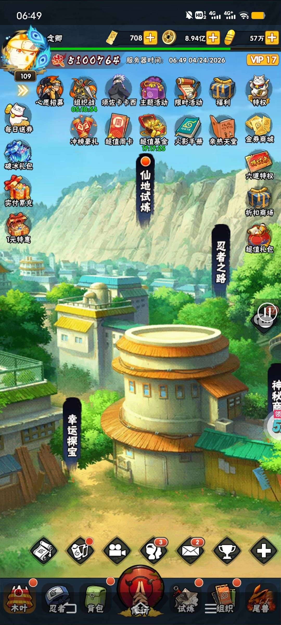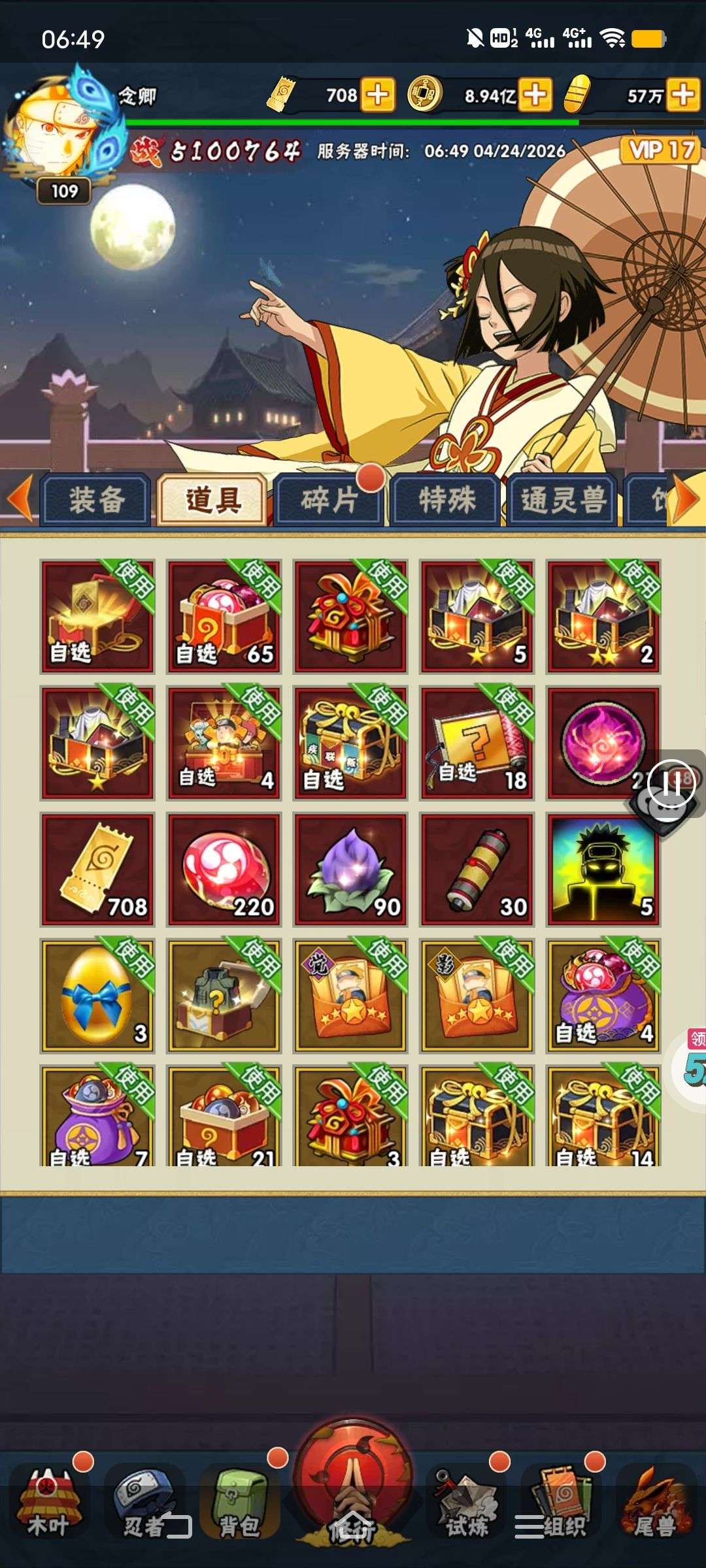 五阵营输出自选包*1、豪华材料自选礼包*2、高级忍法帖*20(每个账号限领一次)