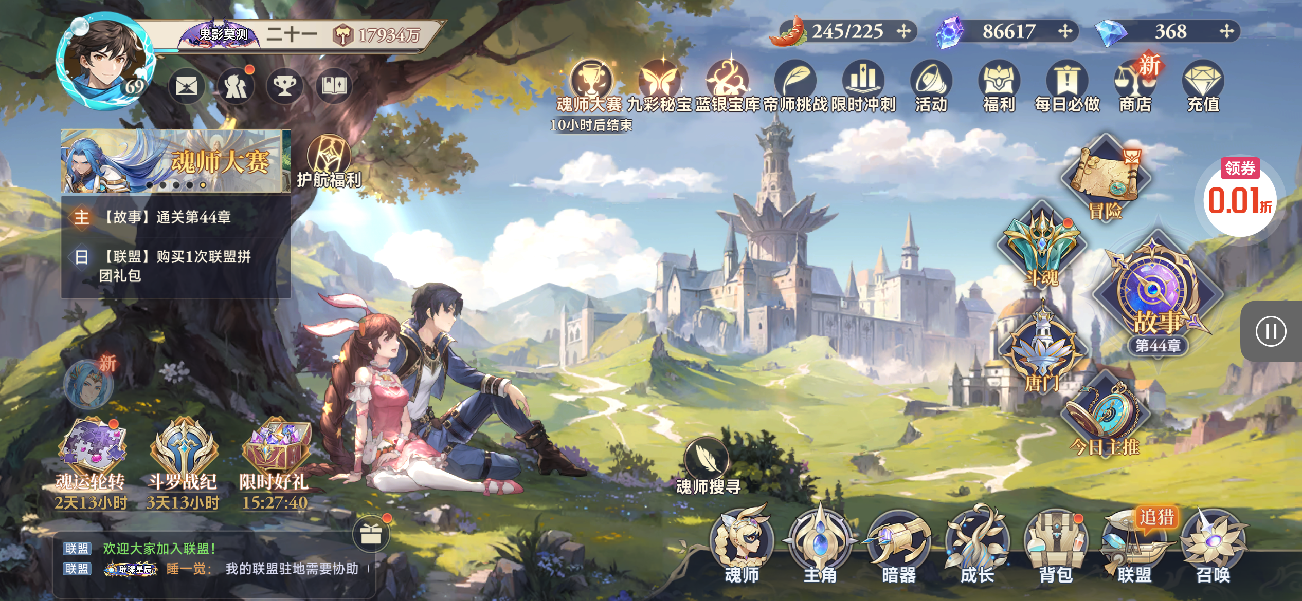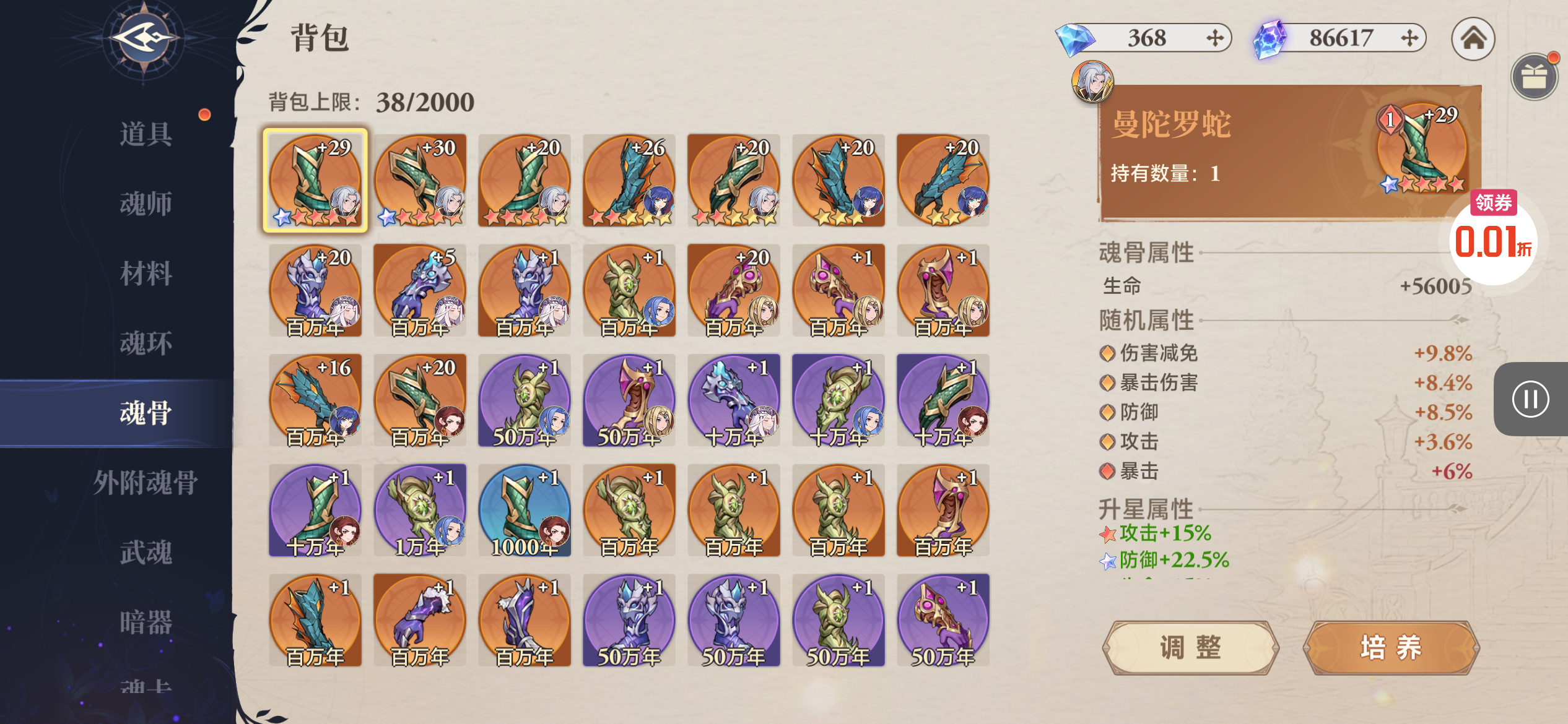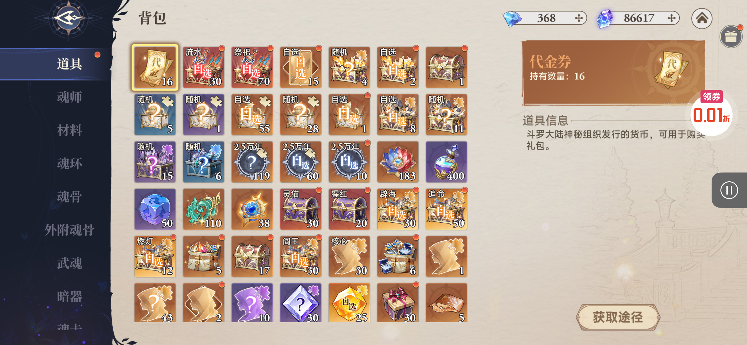 魂晶*888,魂师召唤券*10,武魂水晶*5(每个账号限领一次)