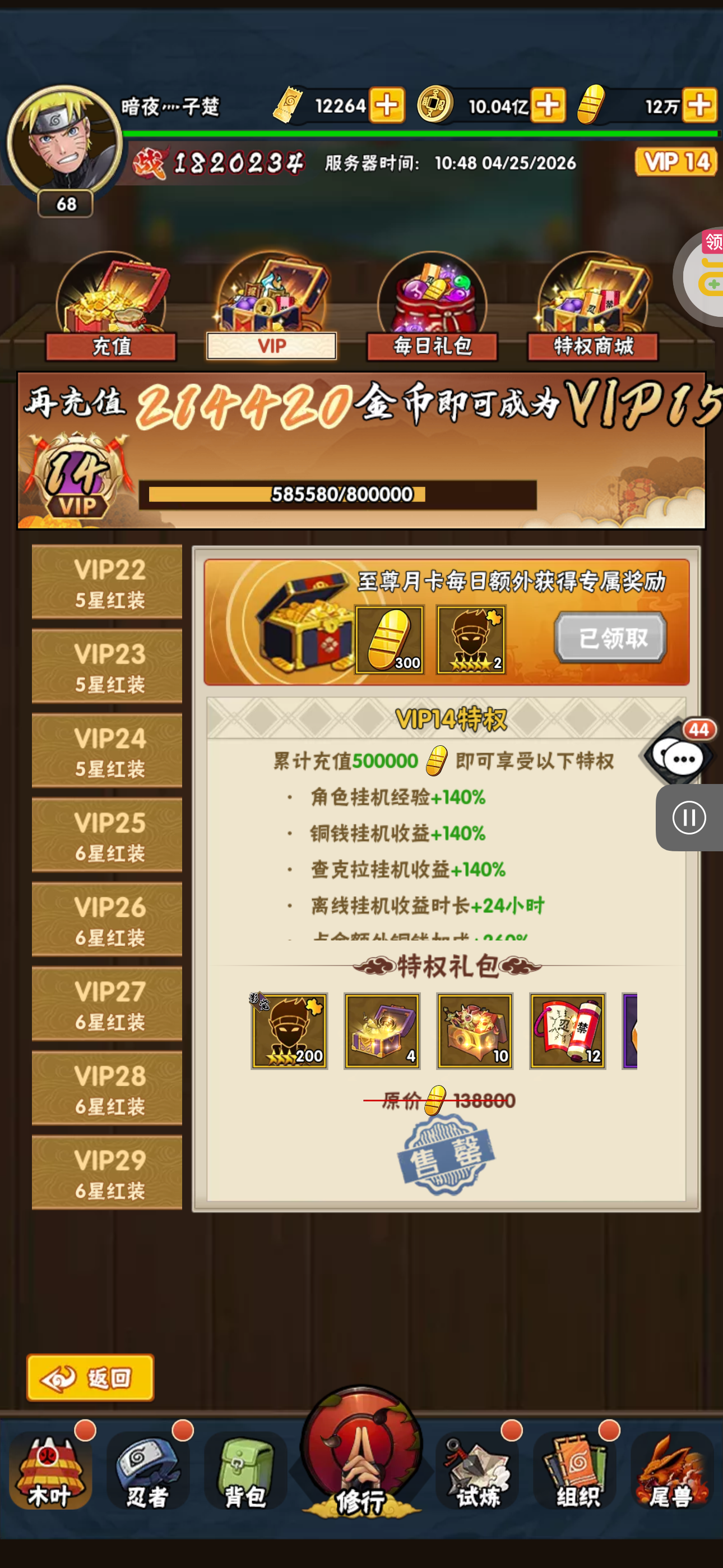 30张648真充卡豪礼、侠客灵丹*10、侠客神丹*10、侠客金丹*1、专属挑战令*1(每个账号限领一次)