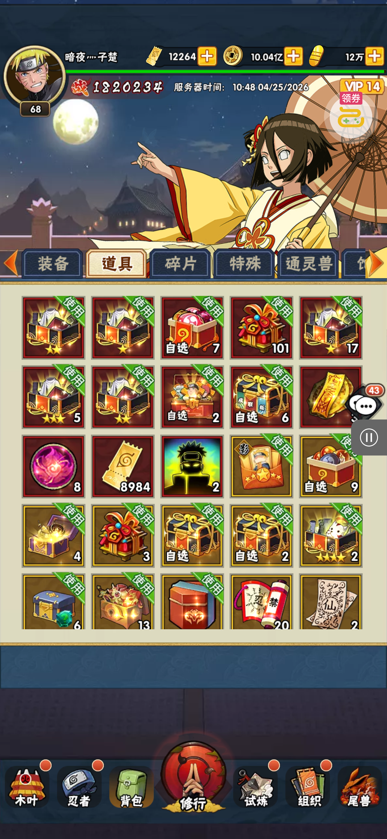 五阵营输出自选包*1、豪华材料自选礼包*2、高级忍法帖*20(每个账号限领一次)