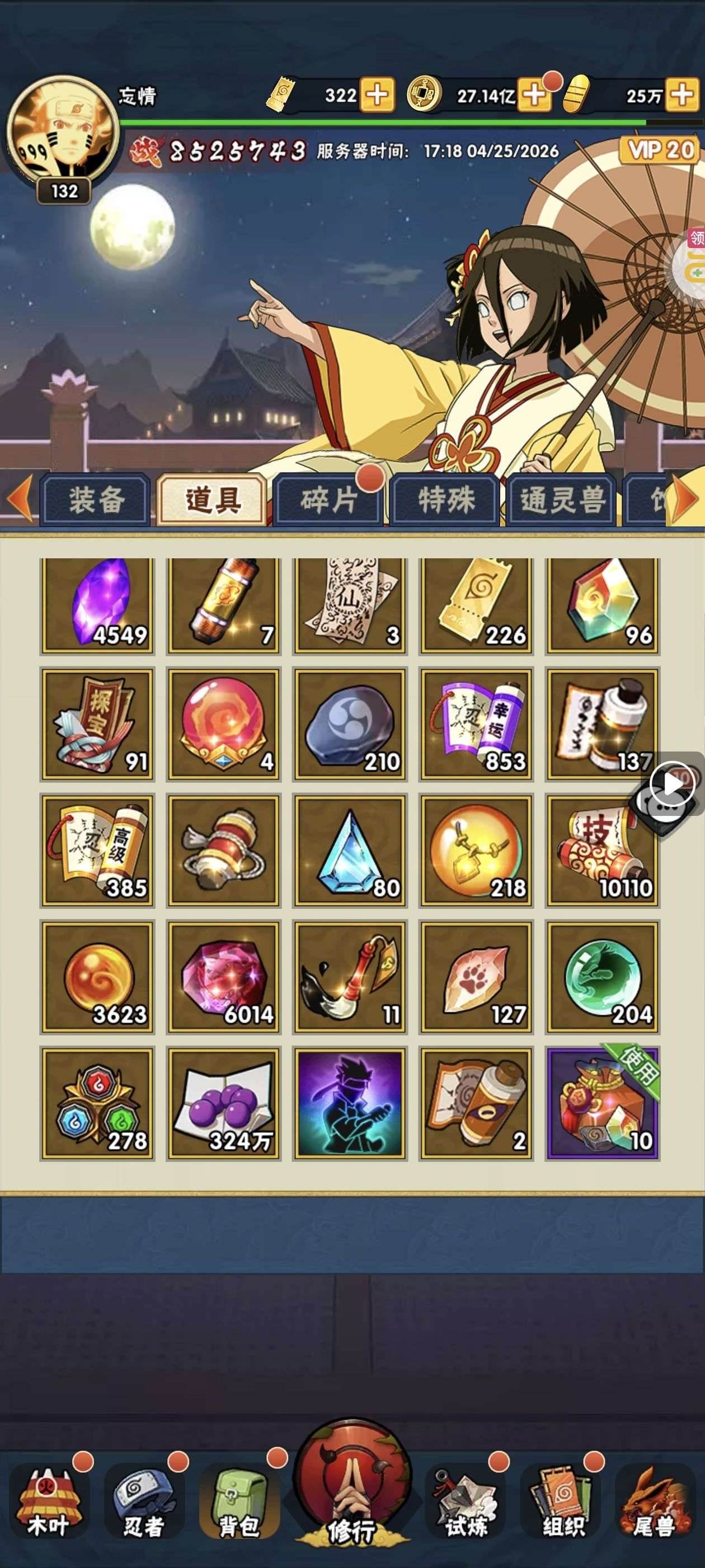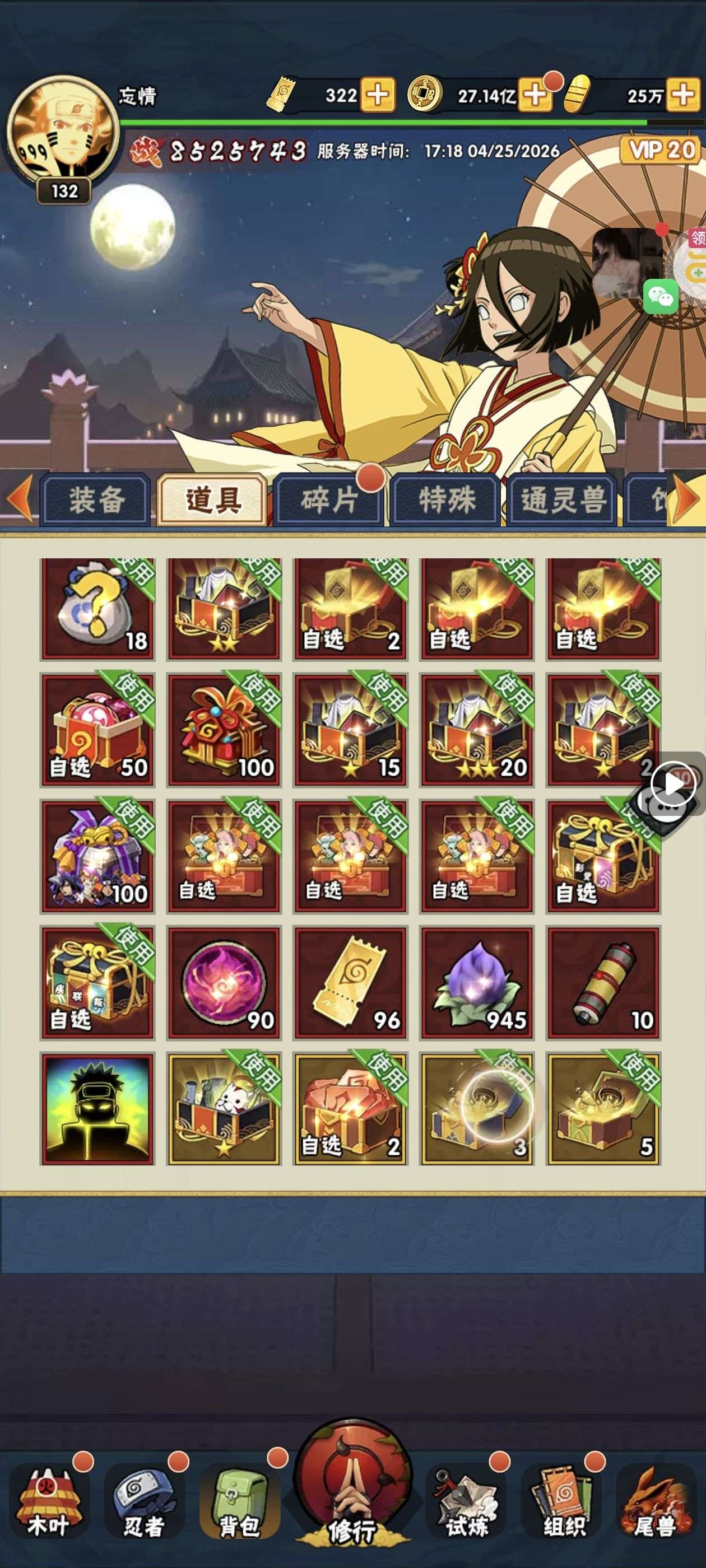 五阵营输出自选包*1、豪华材料自选礼包*2、高级忍法帖*20(每个账号限领一次)