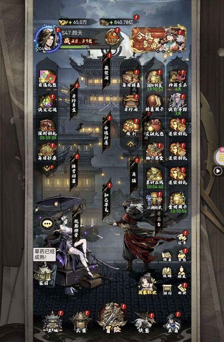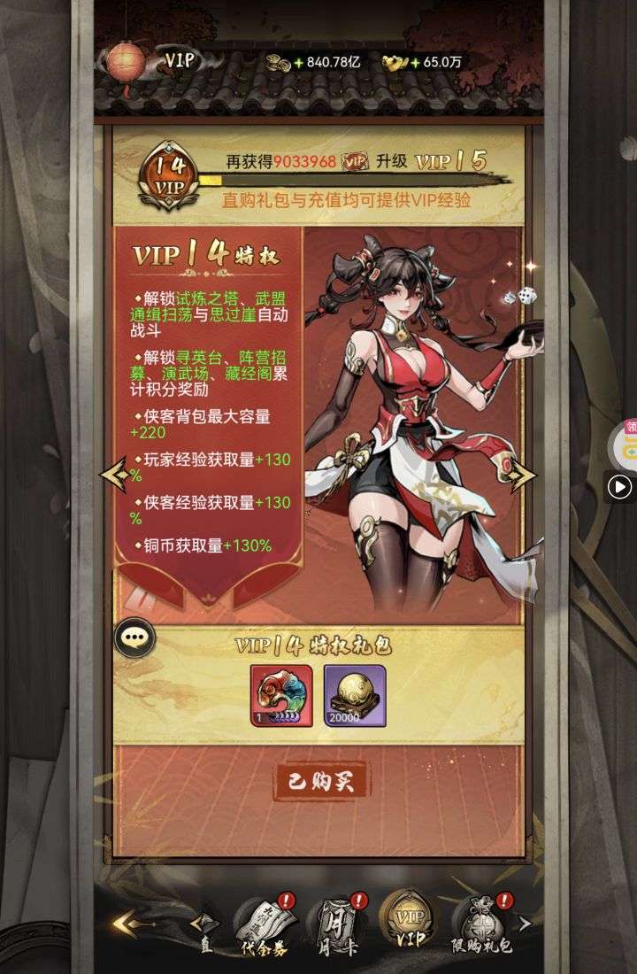 30张648真充卡豪礼、侠客灵丹*10、侠客神丹*10、侠客金丹*1、专属挑战令*1(每个账号限领一次)
