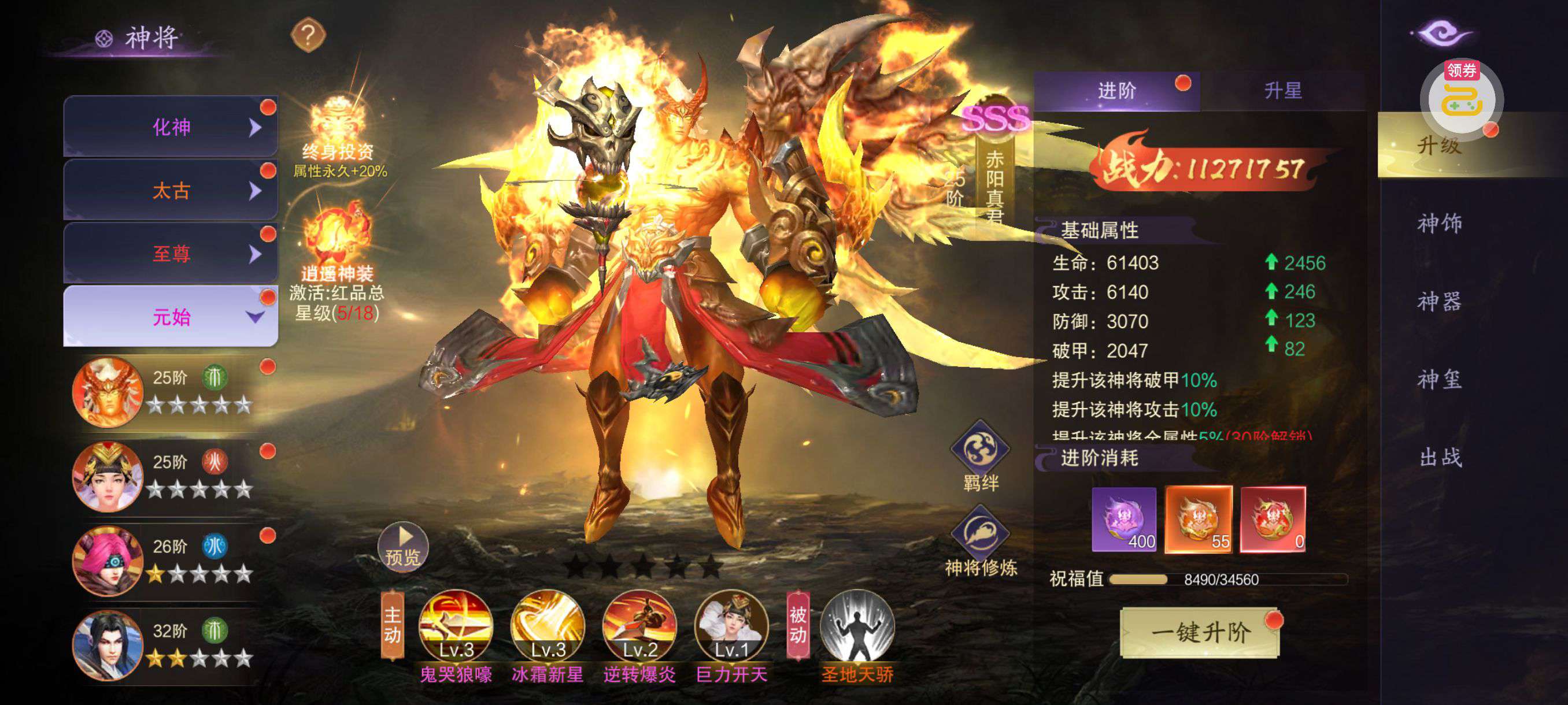 夺宝券*1、比武令*1、5星随机将魂*10(每个账号限领一次)