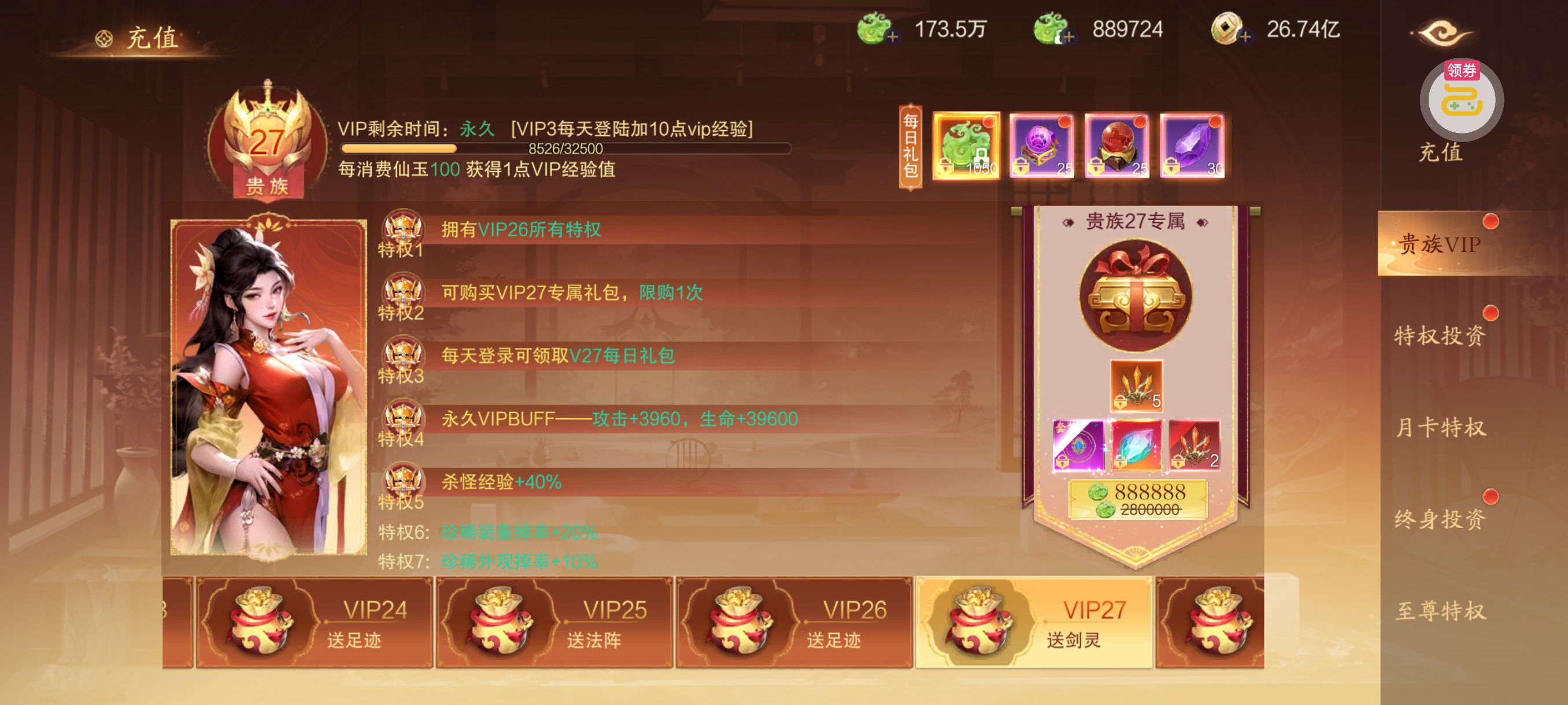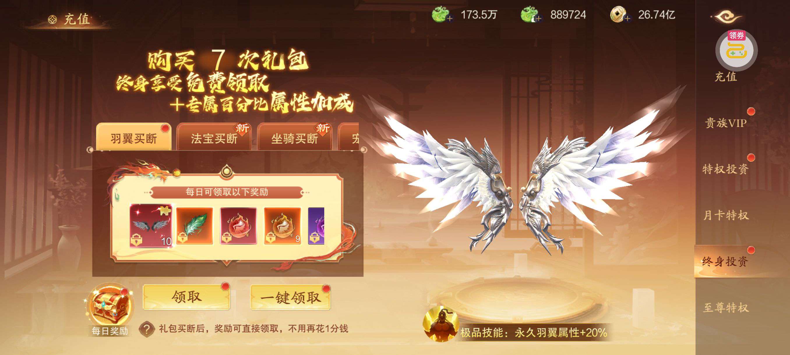 30张648真充卡豪礼、侠客灵丹*10、侠客神丹*10、侠客金丹*1、专属挑战令*1(每个账号限领一次)