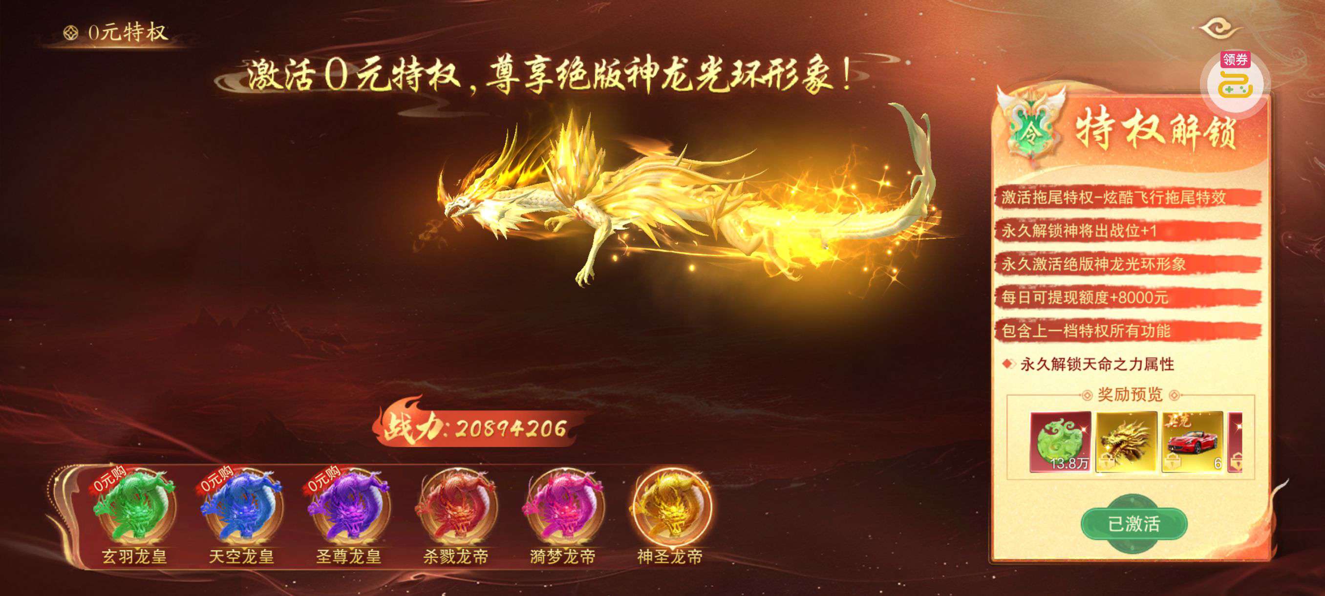 强化药剂*200、钻石招募币*20、金币*50W(每个账号限领一次)