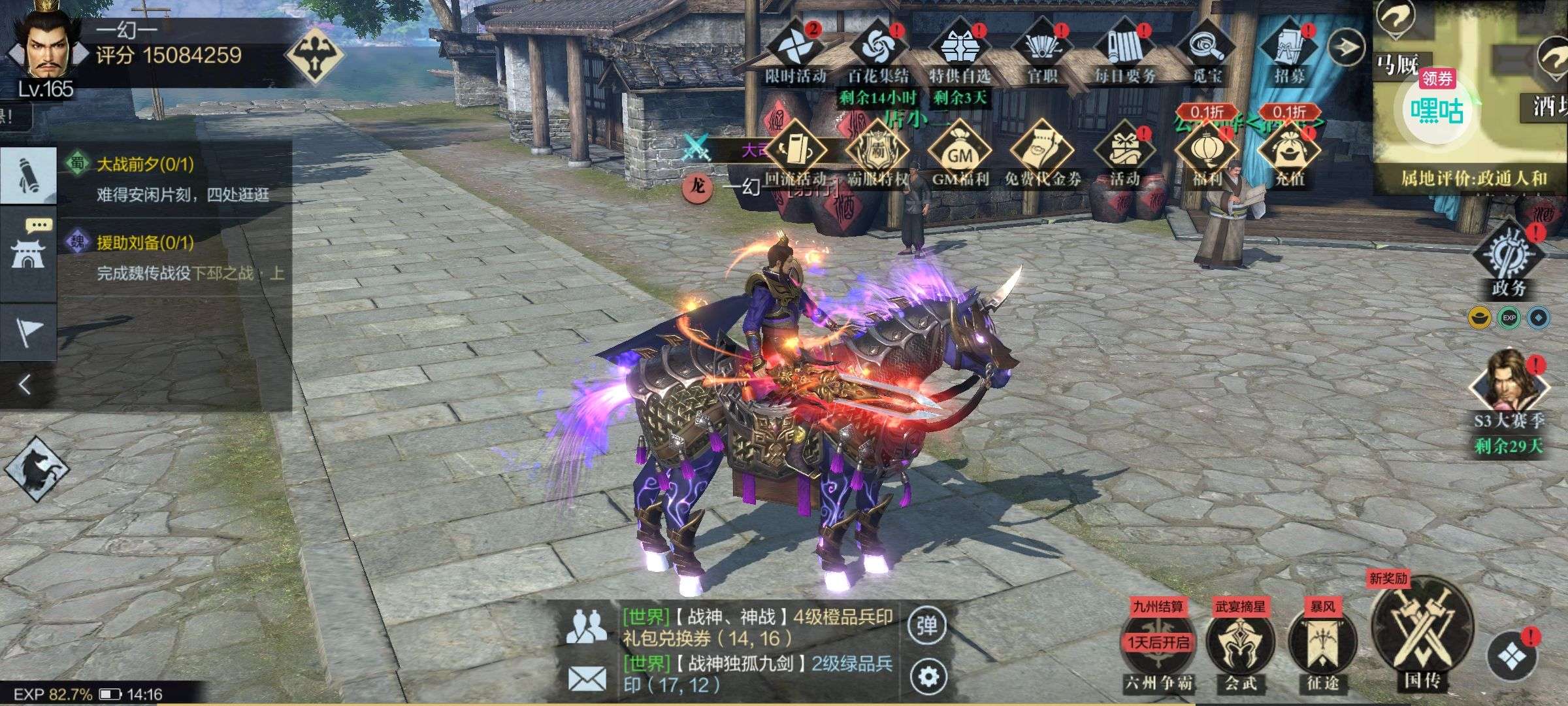 夺宝券*1、比武令*1、5星随机将魂*10(每个账号限领一次)