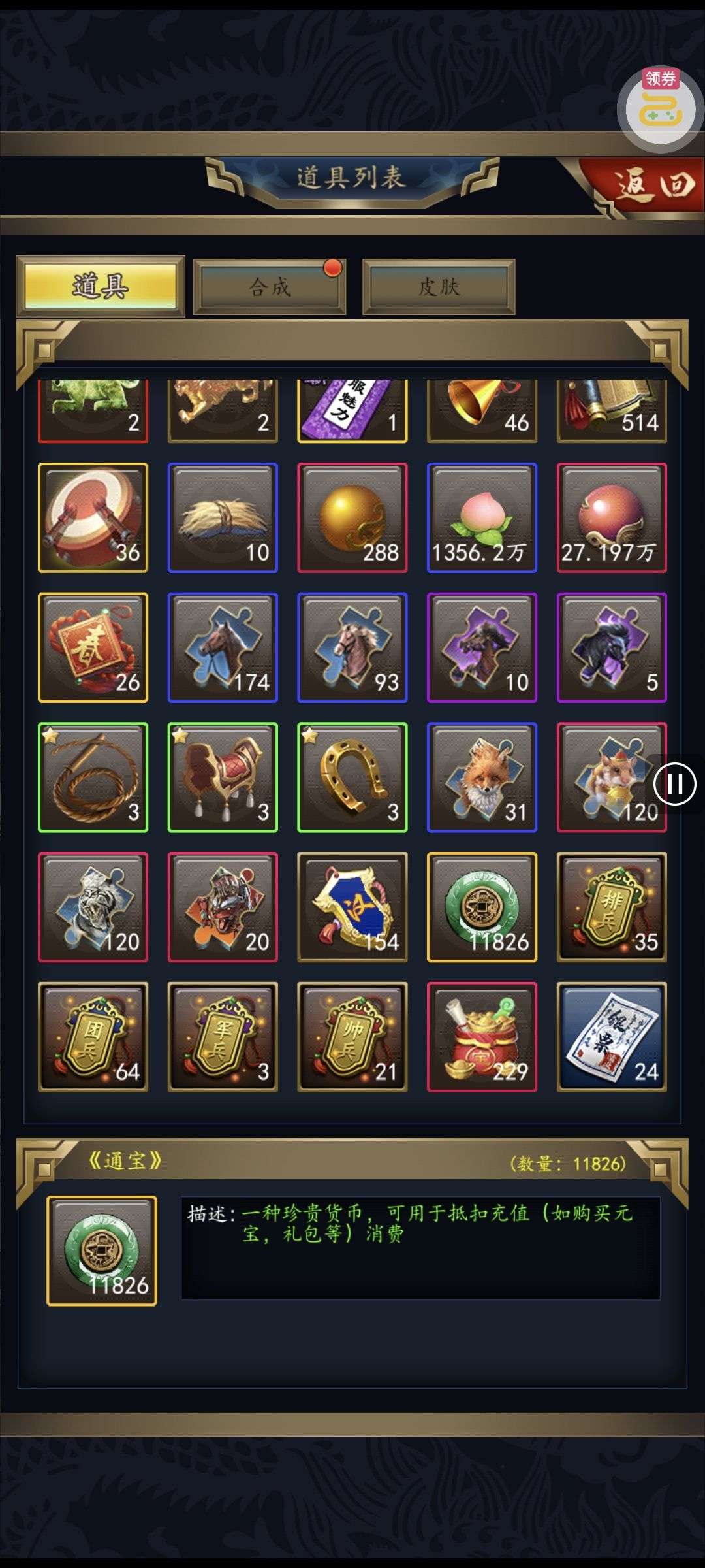 夺宝券*1、比武令*1、5星随机将魂*10(每个账号限领一次)