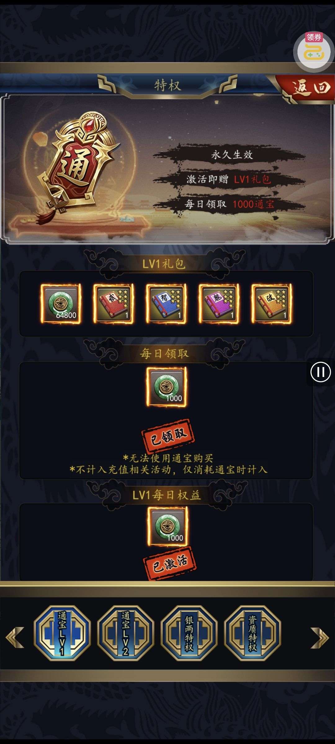 30张648真充卡豪礼、侠客灵丹*10、侠客神丹*10、侠客金丹*1、专属挑战令*1(每个账号限领一次)