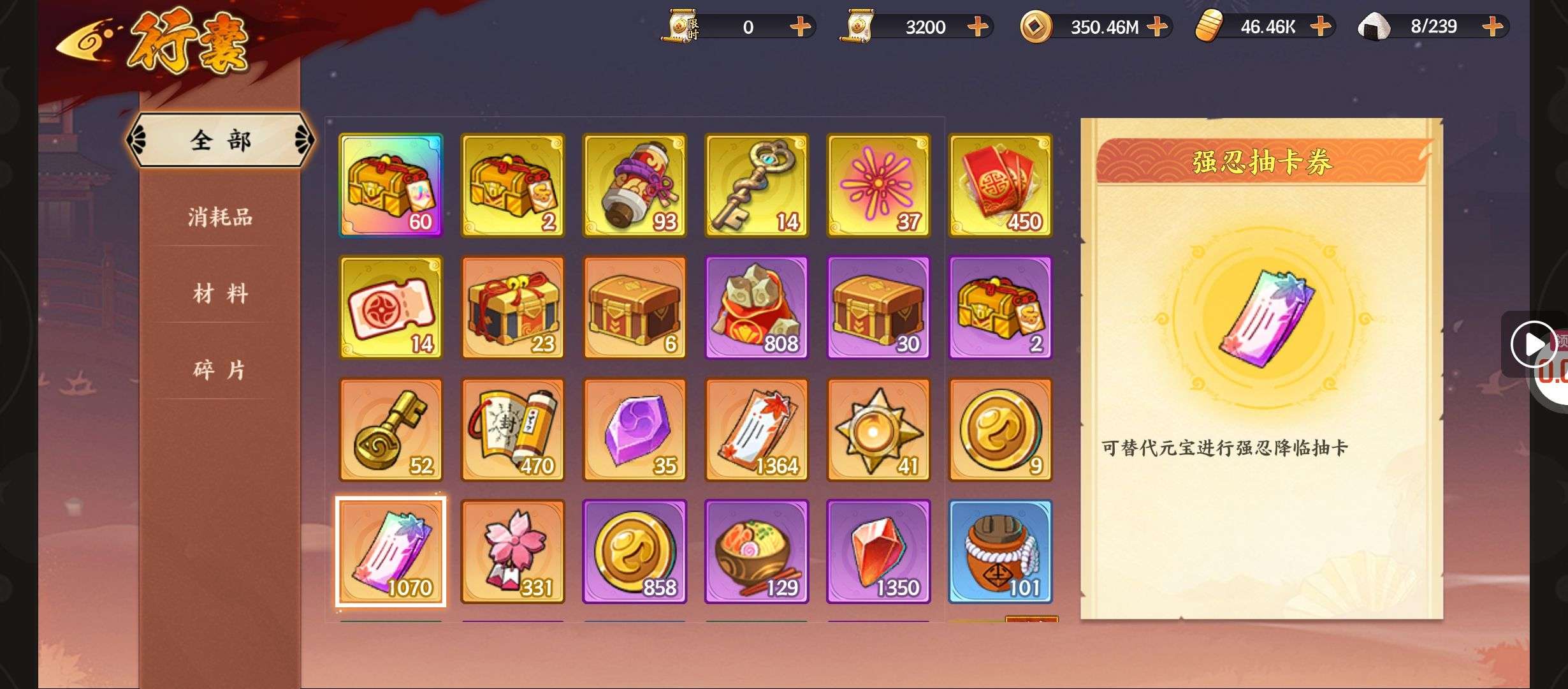 五阵营输出自选包*1、豪华材料自选礼包*2、高级忍法帖*20(每个账号限领一次)