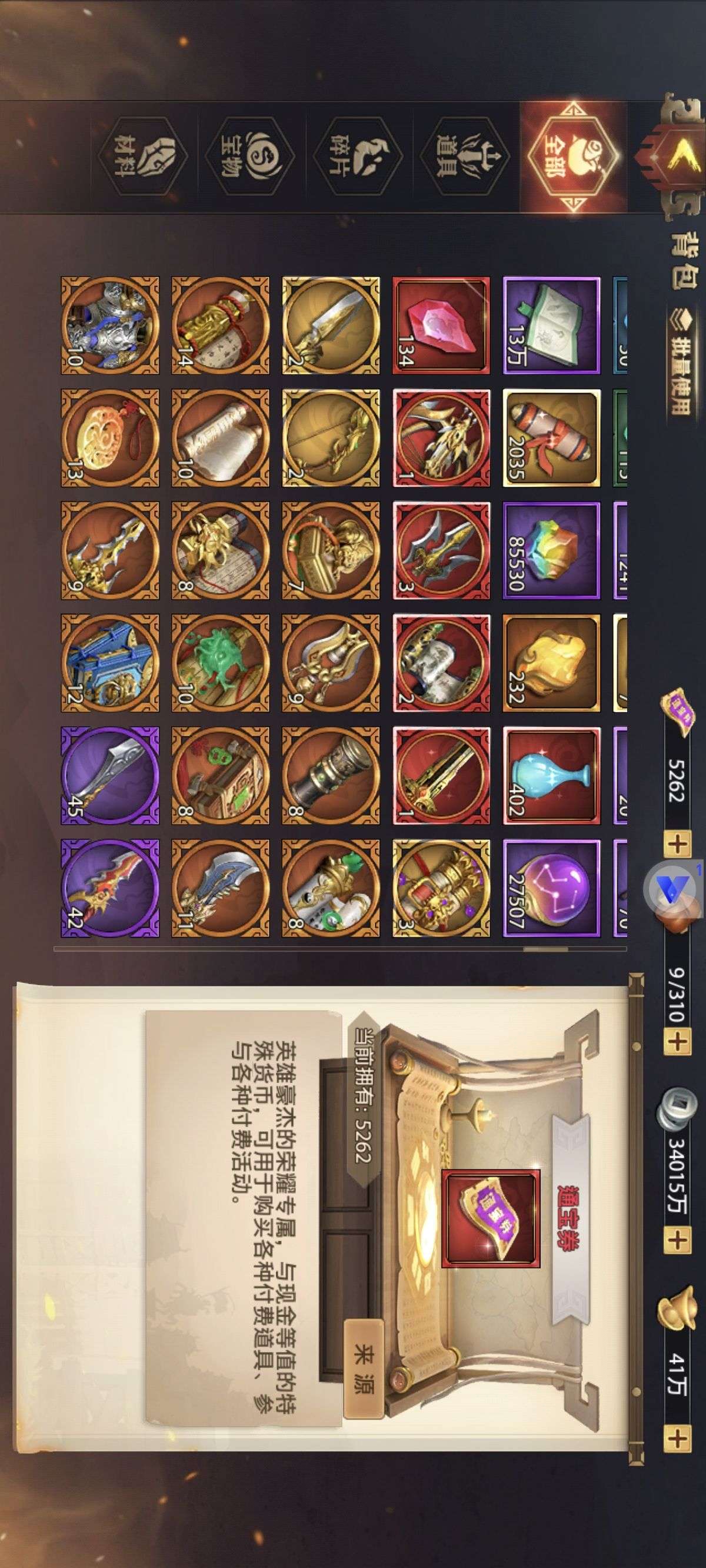 夺宝券*1、比武令*1、5星随机将魂*10(每个账号限领一次)