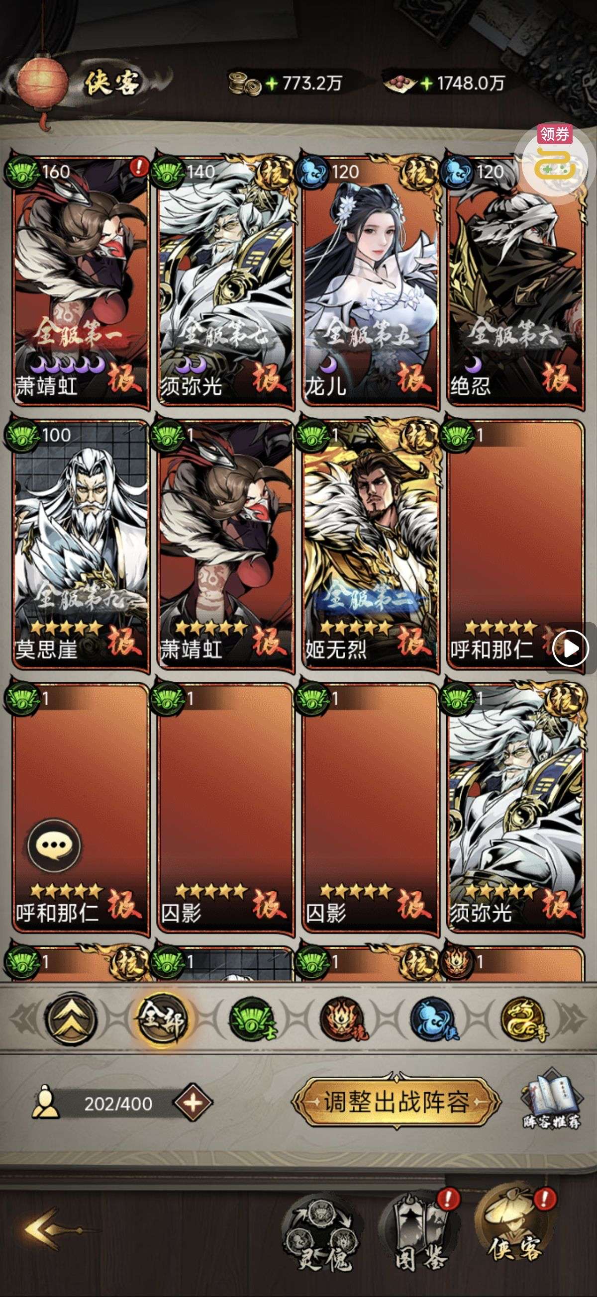 30张648真充卡豪礼、侠客灵丹*10、侠客神丹*10、侠客金丹*1、专属挑战令*1(每个账号限领一次)