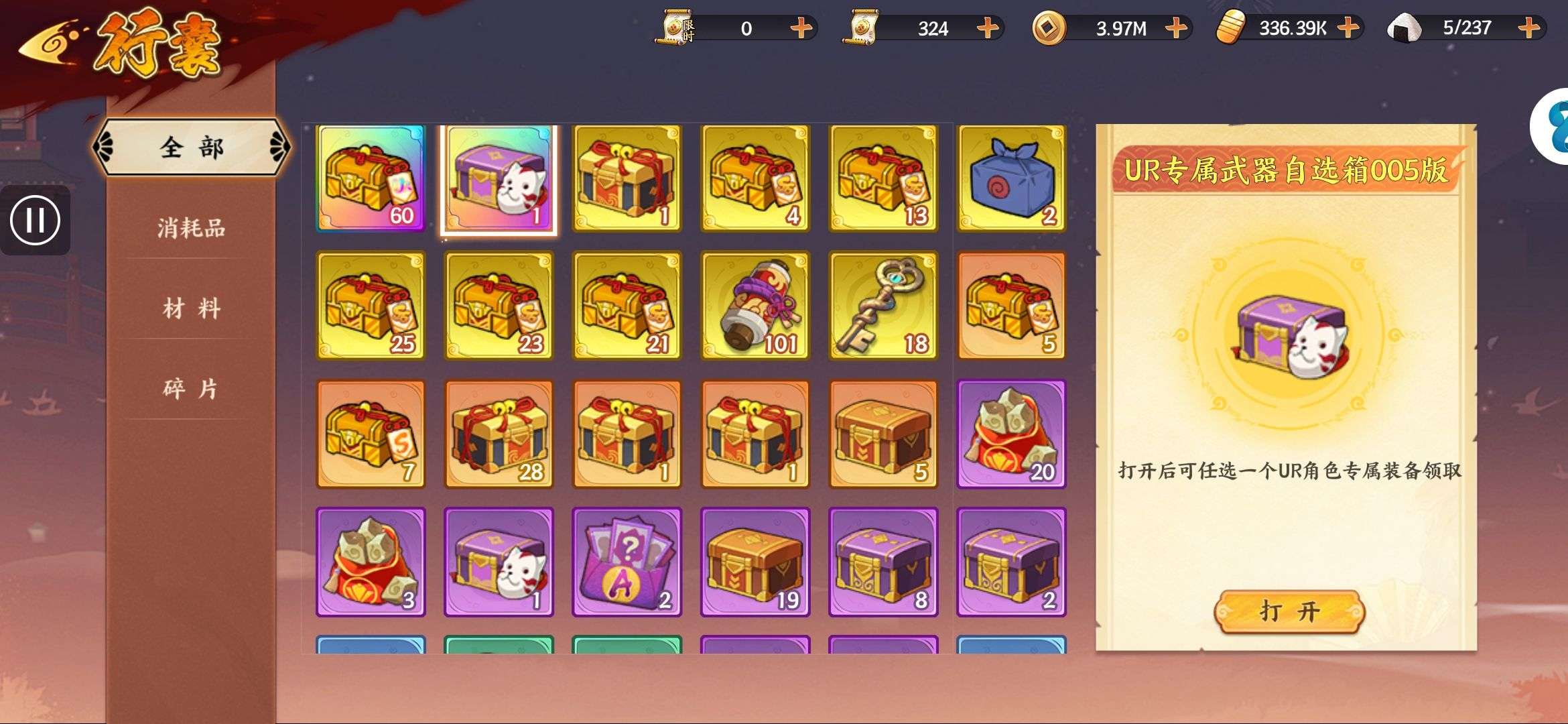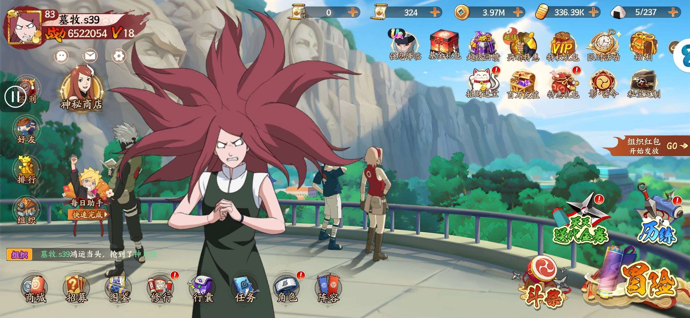 五阵营输出自选包*1、豪华材料自选礼包*2、高级忍法帖*20(每个账号限领一次)