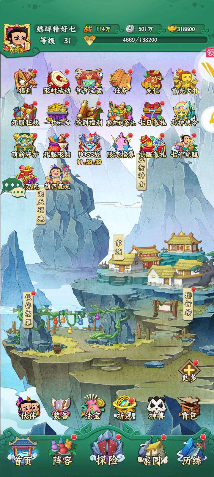 60级 一件红装 两套金装 300多万战力七娃 总战力接近700万 区排名第九 vip17