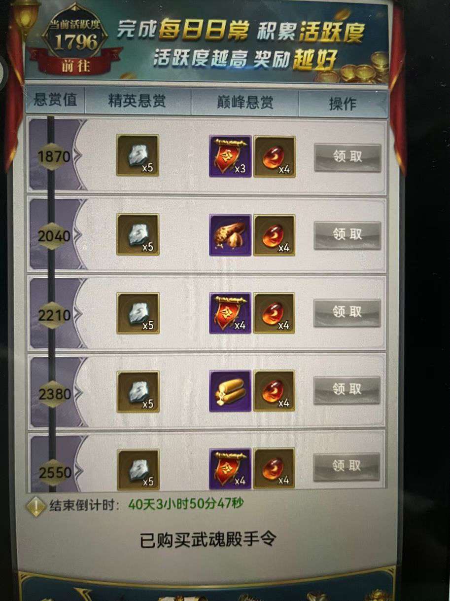 夺宝券*1、比武令*1、5星随机将魂*10(每个账号限领一次)
