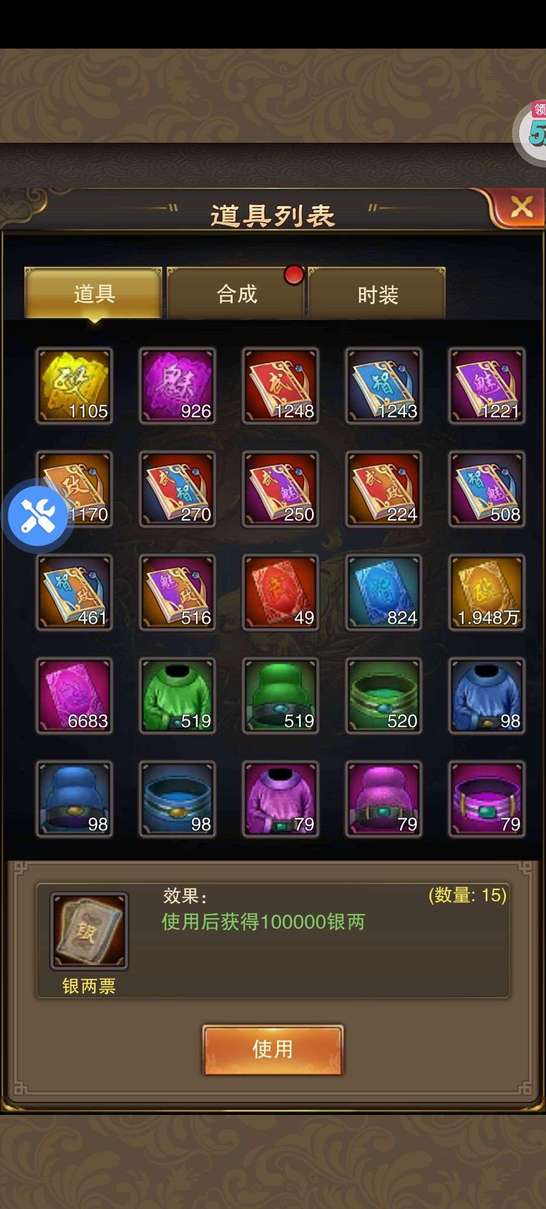 夺宝券*1、比武令*1、5星随机将魂*10(每个账号限领一次)