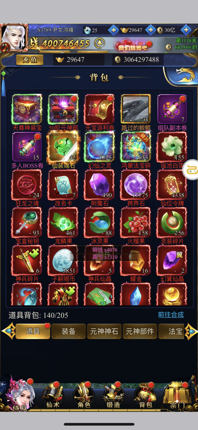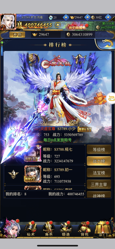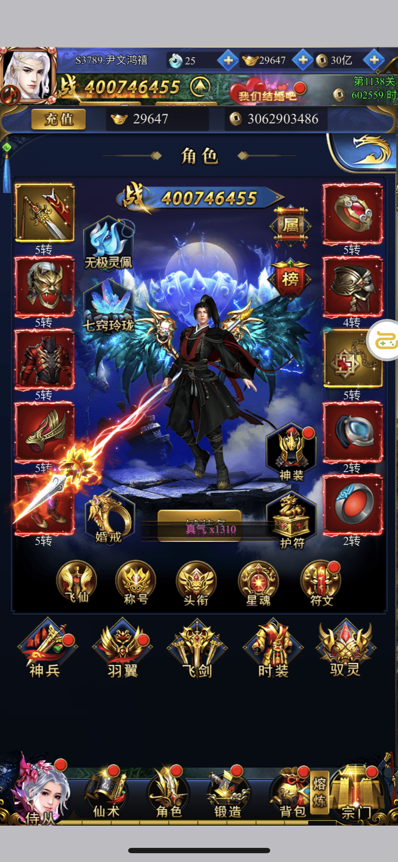 充了一万六,仙器19件,战力近23亿,至尊V11,马上12。吐血甩