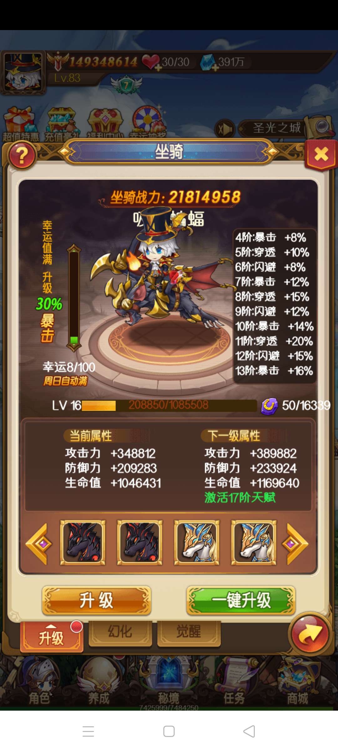 1.4亿战力还有300多w钻,37服工会副会,全服可排到第二