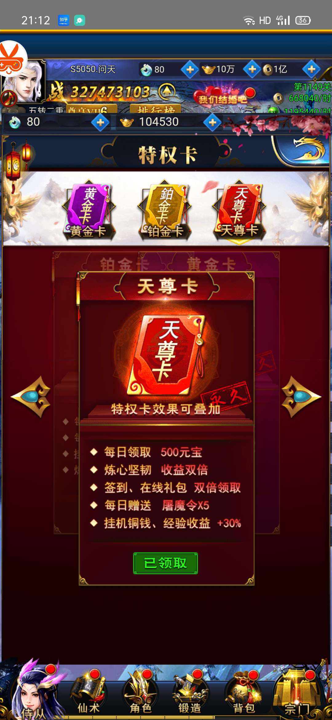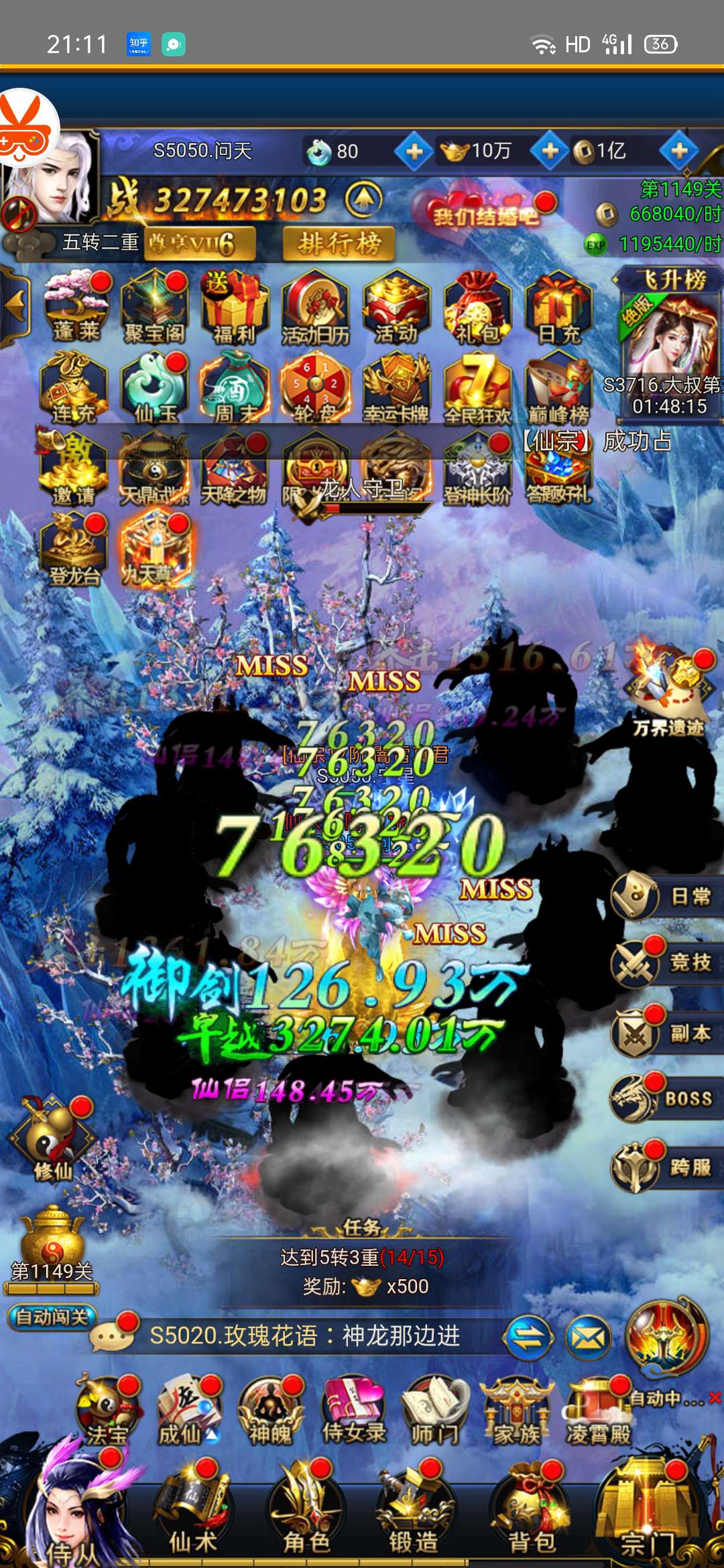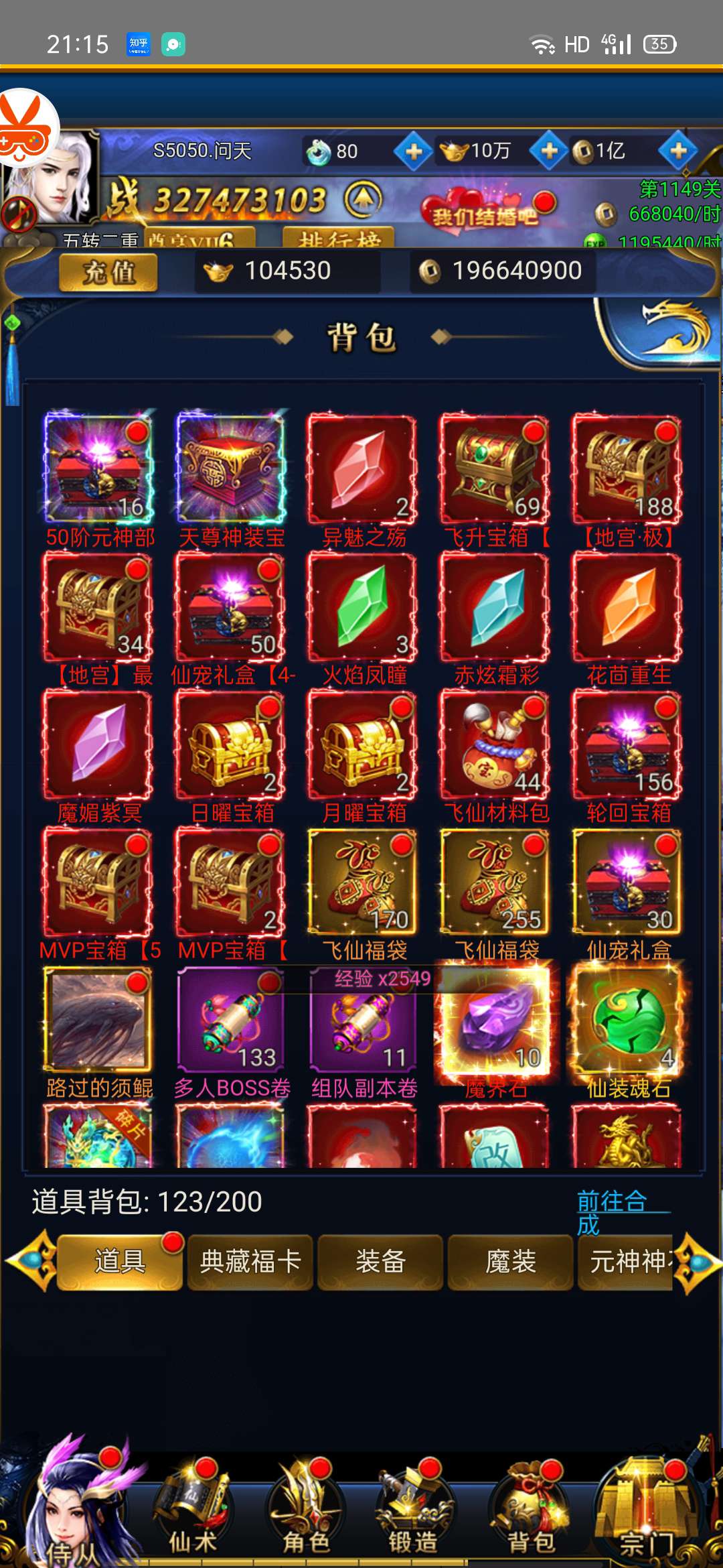 充了一万六,仙器19件,战力近23亿,至尊V11,马上12。吐血甩