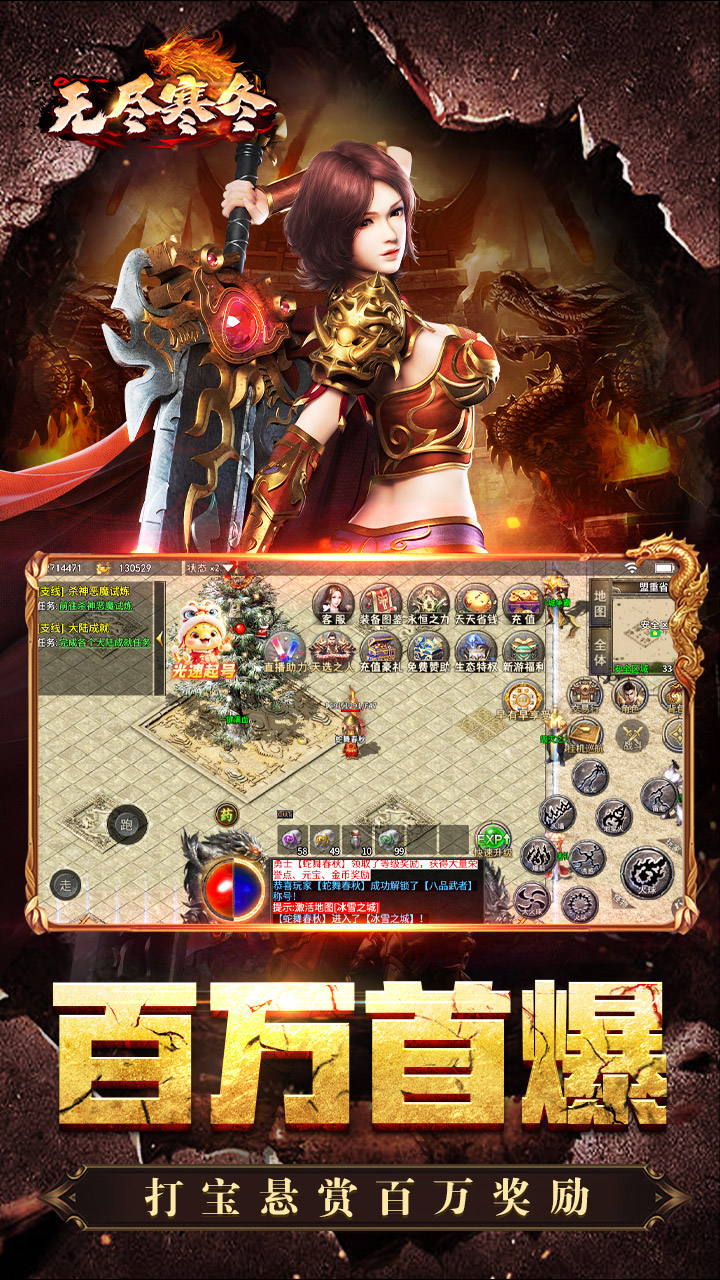 《无尽寒冬》是一款高福利高爆三职业版本。上线送自动回收、自动拾取、海量材料福利。游戏结合攻速专属、剧情、沉默等特色玩法,精灵、全屏神技、上古神兵、奇物新颖玩法了,给你不一样的体验,回归沉默打金传奇本色,一切装备货币材料靠打,时间称王!