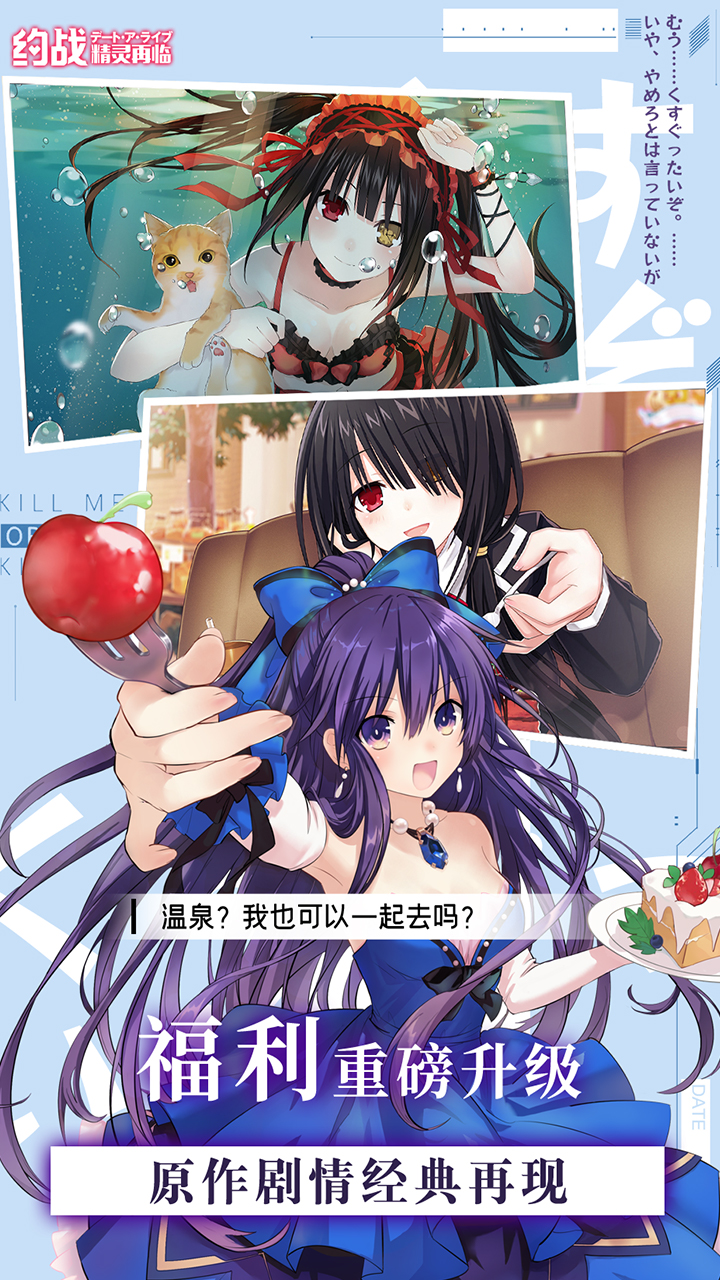 《约战:精灵再临》是一款角川正版授权,原版声优倾情献声的恋爱动作手游,富含Galgame的文字恋爱冒险元素以及各类模拟养成和社交休闲玩法。精灵,存在于邻界的特殊灾害指定生命体。 当被称之为精灵的美少女显现于世时,便会导致将万物破坏殆尽的灾厄发生。阻止这一切的方法只有两种:方法一:以武力将其歼灭。 方法二:与其约会,使其娇羞。 现在,熟悉的精灵少女再次出现,新的约会即将开始!——约会大作战正版手游,海量剧情结局等你发掘,原作世界观高度还原,不仅能在游戏中体验横版战斗的快感,还能够通过独特的约会玩法体验与精灵约会的乐趣。多达200余种的剧情结局,每一个选择都可能带来惊喜!——超自由培养模式,同一精灵多种发展方向,独创天使与卡巴拉生命树质点系统,高自由度的养成体系,每一个精灵都有多种路线养成,不同路线将造就定位完全不同的精灵,如何培养出拥有自己特色的精灵就看你了!