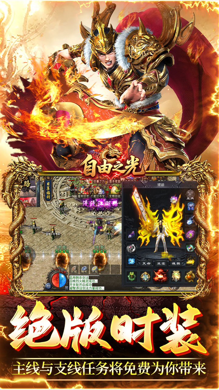《自由之光》加入我们,体验""游历诸天万界”的剧情,让你在全大陆的冒险中,从一名普通散人成长为主宰世界的开拓者。可自由更换,解锁""天空之城”、""大梁国度”、“迷幻阵”、“天师府”、“弱水秘宫""等精彩剧情,让你的冒险之旅充满无限可能!丰厚“新手福利”:立即加入,即可获得""自动捡物”、“自动范用拾取”、""自动回收”、“自动吃经验”、“自动吃元宝”“自动挂机""等实用功能,让你的起步更加